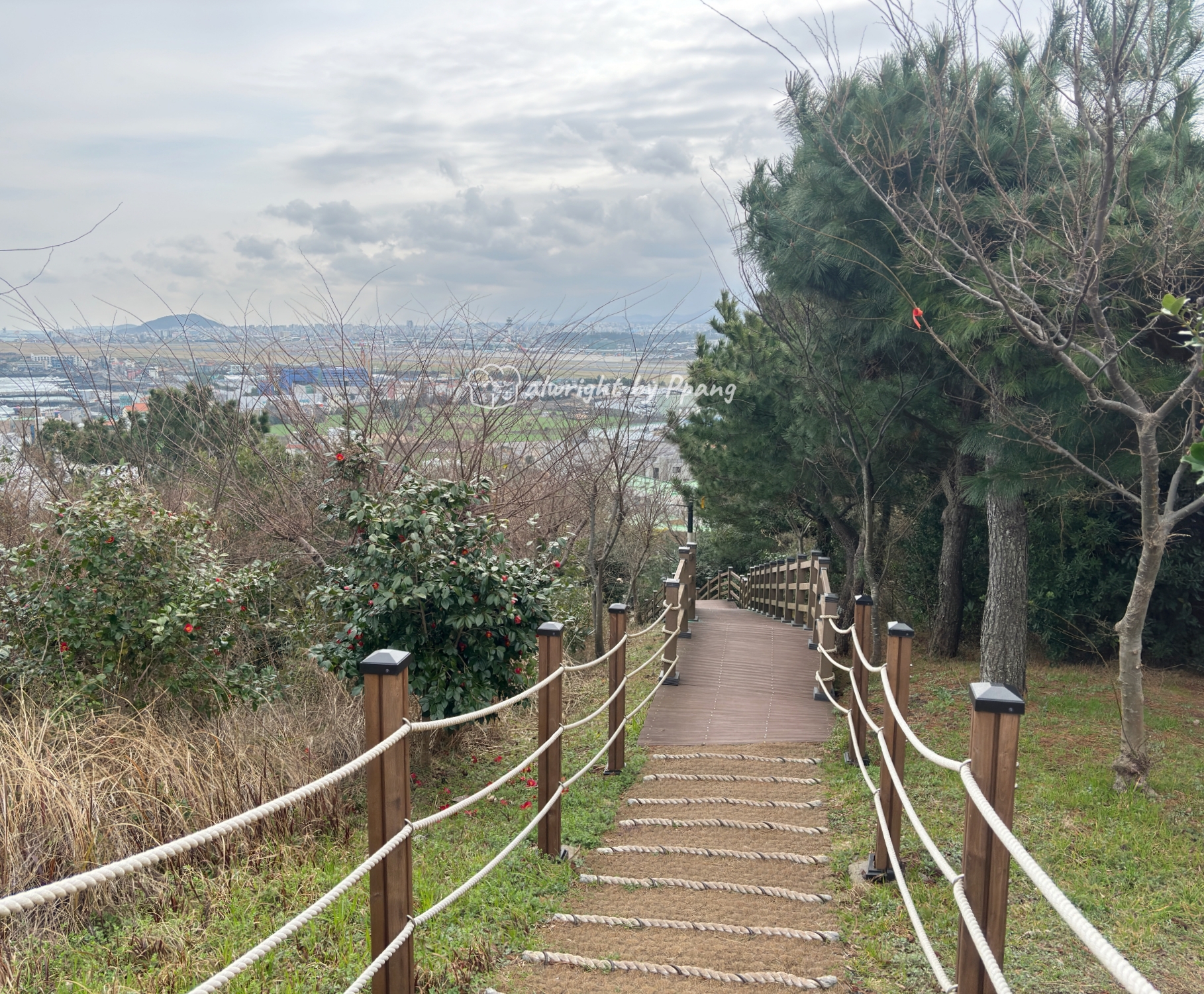 이렇게 낮은 오름에 슬슬 걸어올라가 바다, 도두항, 한라산, 비행장 활주로, 비행기 이착륙도 볼 수 있으니 볼거리 풍성, 너무 편리한 여행 스팟이다.