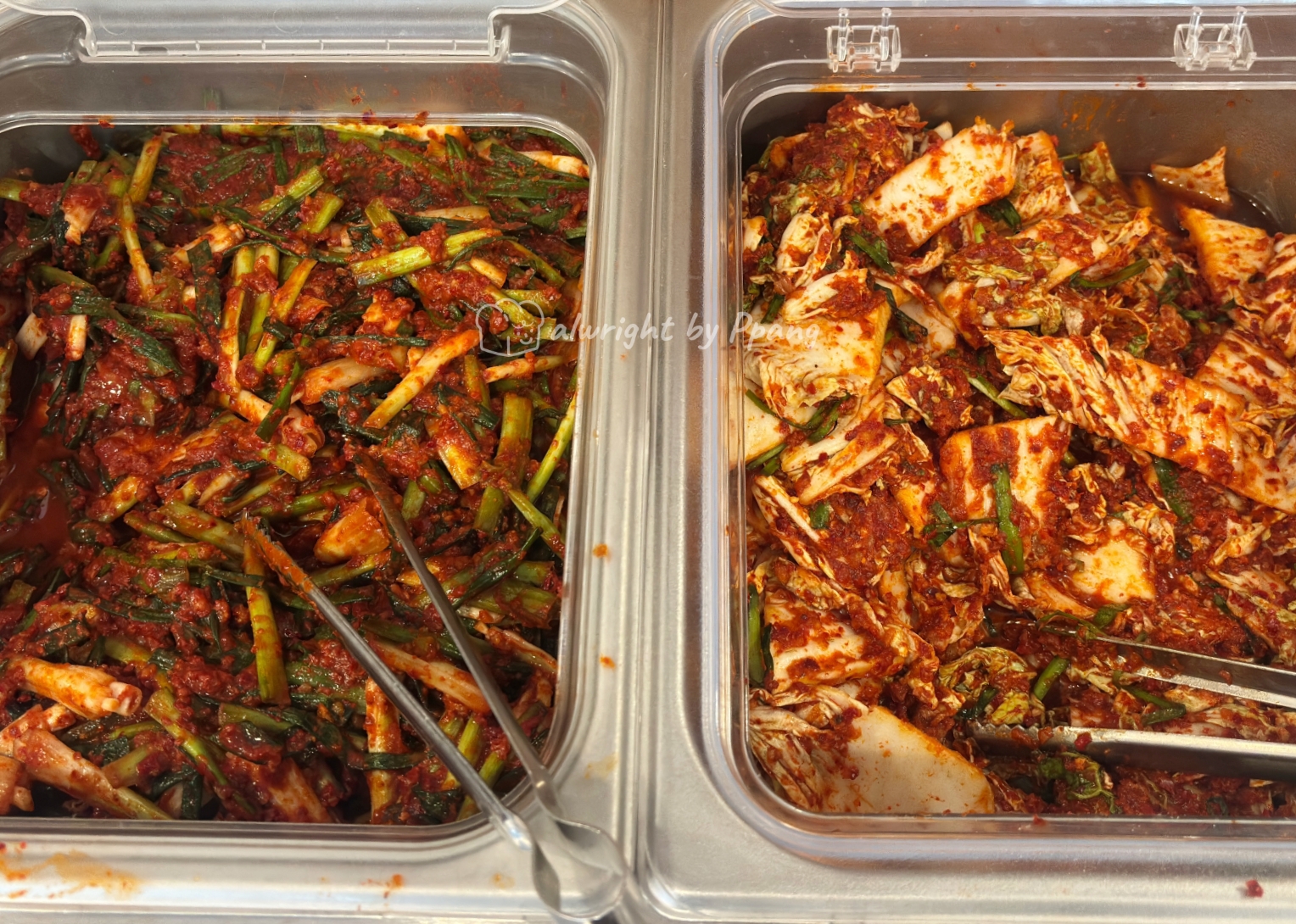 칼국수 김치는 가져다 준다. 파김치는 호불호가 많은 항목이라 그런지 셀프서비스다. 하긴 파김치의 경우 가격은 비싼데 안 먹는 사람은 아예 안 먹는다. 그래서 이렇게 운영하는 것 같다.