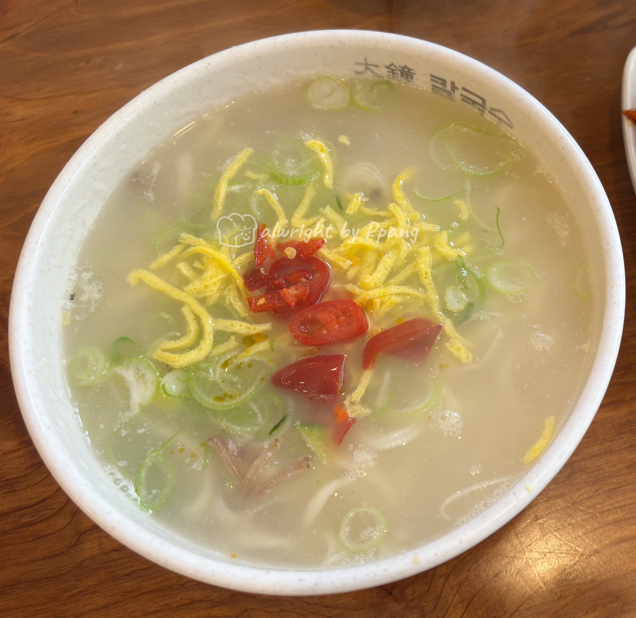 홍고추와 파를 많이 올려서 자칫 느끼할 수 있는 국물맛을 살짝 다스려 준다.