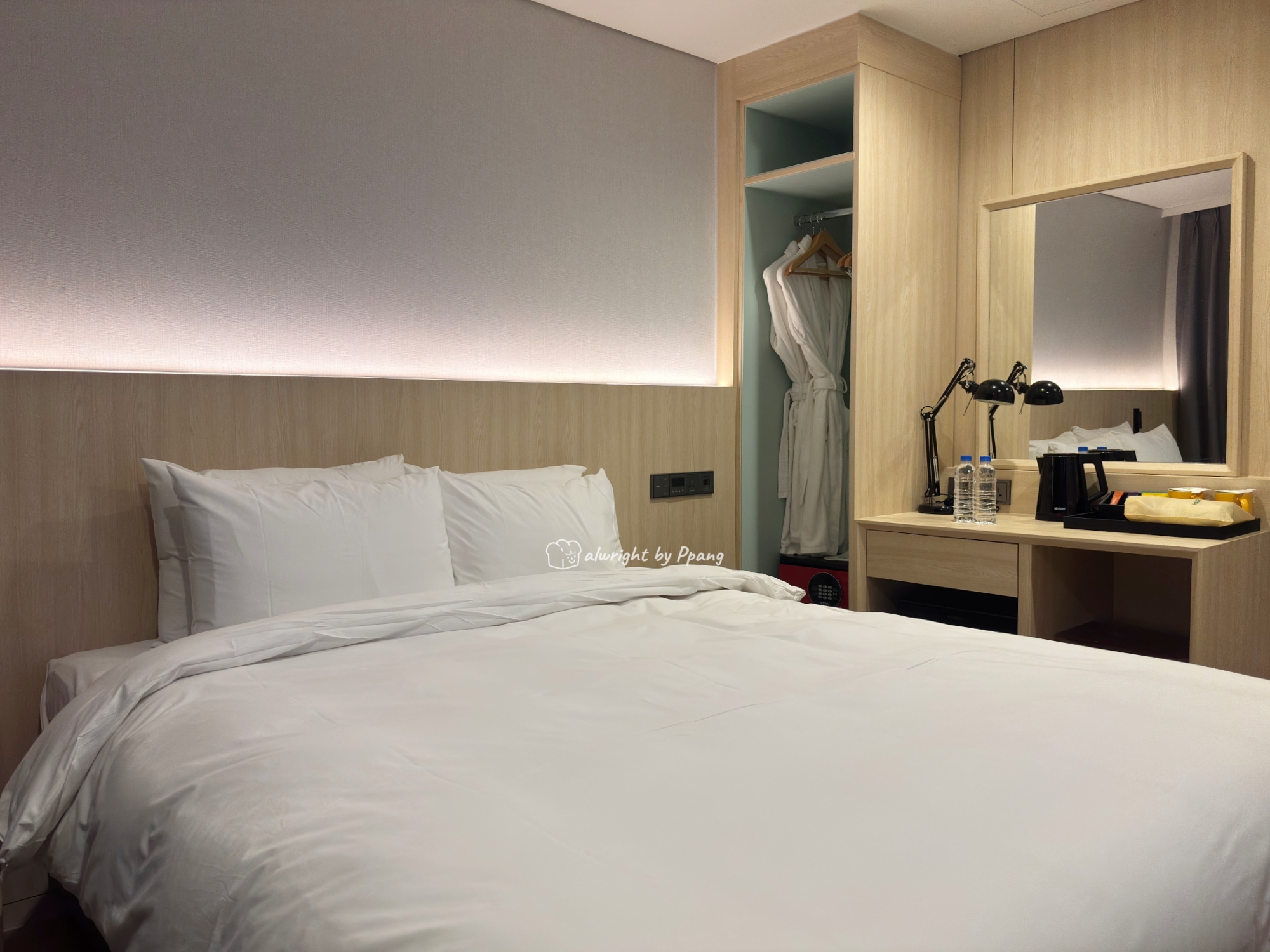 내가 예약한 객실은 스탠다드 더블룸으로 가장 작은 객실이다. (보통 10만원 내외, 난 평일 할인혜택 받고 6만원대에 투숙, 정확한 금액은 링크한 동영상 참고)