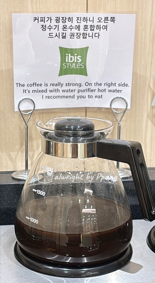 만원짜리 호텔 조식, 아니 숙소에서 공짜로 주는 조식도 이렇게는 안 나오는데... 왜 이런 방법을 택했을까... 커피 머신 하나 들여 놓으시지.... 그게 아니면 차라리 정수기 옆에 스틱 커피를 놓는 것이 솔직하다. 내가 커피에 집착해서인지는 몰라도 살짝 기만당하는 느낌까지 들어서 기분이 좋지 않았다.