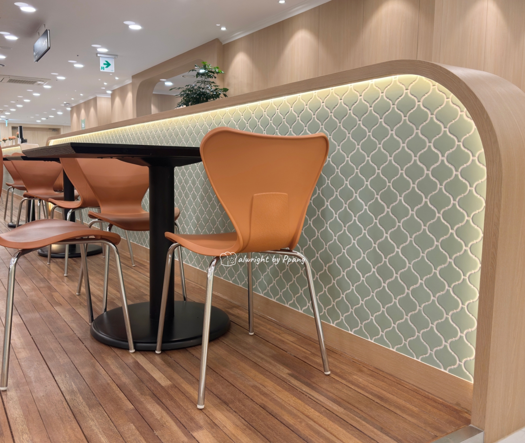 조식당에서 가장 마음에 들었던 건 제이드 컬러의 타일로 장식한 낮은 파티션이다. 그니까 리뉴얼은, 하드웨어는 잘 했다. 이제 내용물을 조금 개선시키면 어떨까 싶다.