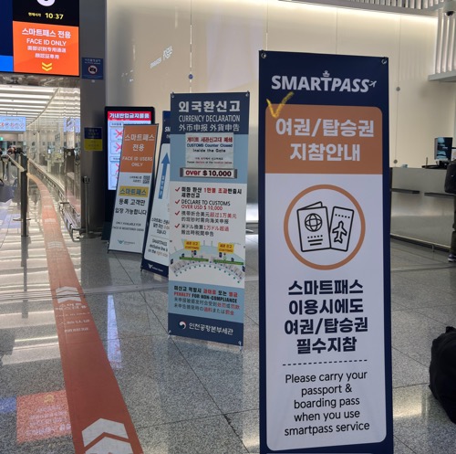 이번 여행에서는 스마트패스를 사용하여 출국수속을 했다. 줄 설 필요없이 얼굴만 보여주면 되는 빠름빠름빠름… 물론 여행자가 많이 몰리는 시간은 여기도 줄을 서지만 줄 빠지는 속도가 빠르니까 한번 해볼한 방법이다.
