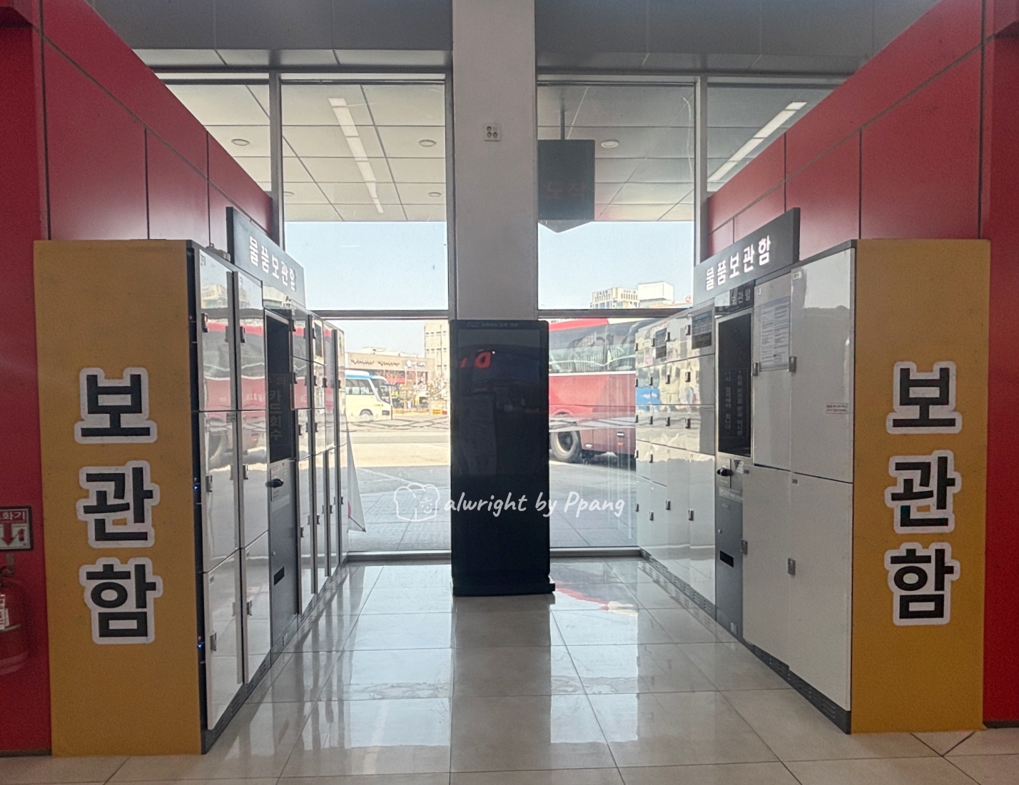 버스 기다리면서 잠시 주변을 돌아보는 여행자들을 위해 짐 보관함이 있다.