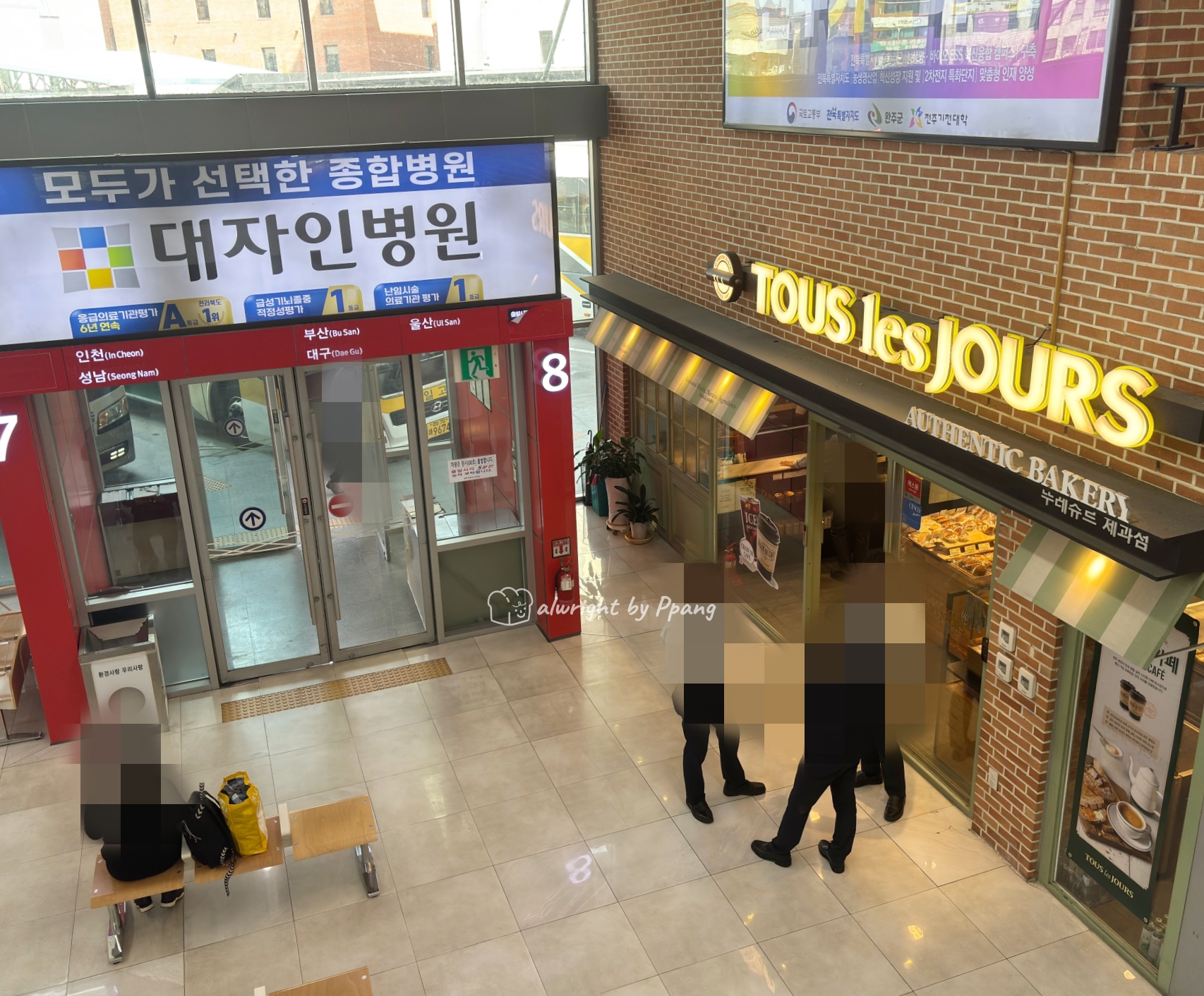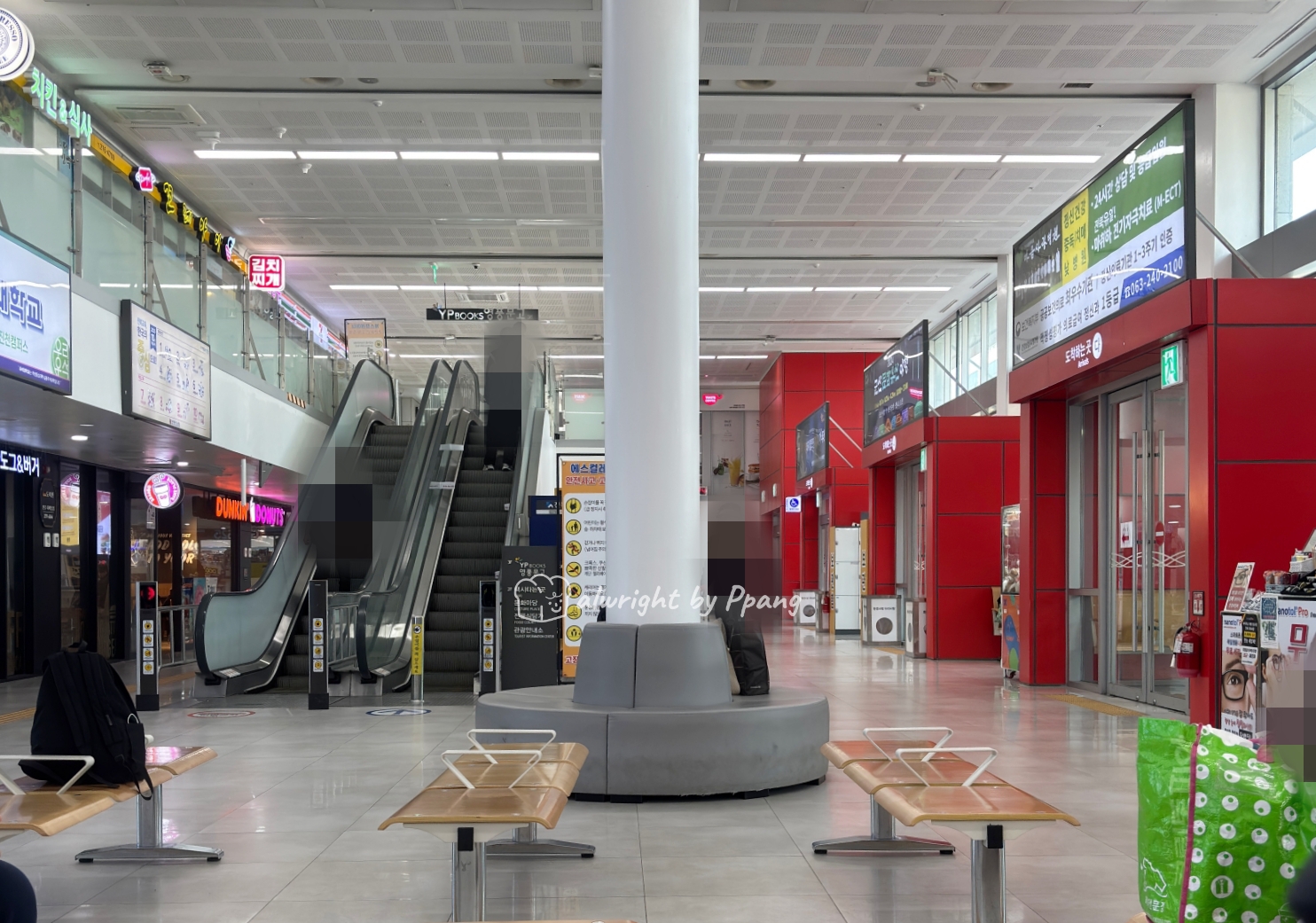 1층에 고속버스터미널의 핵심기능인 발권, 승,하차, 대합실이 있다.