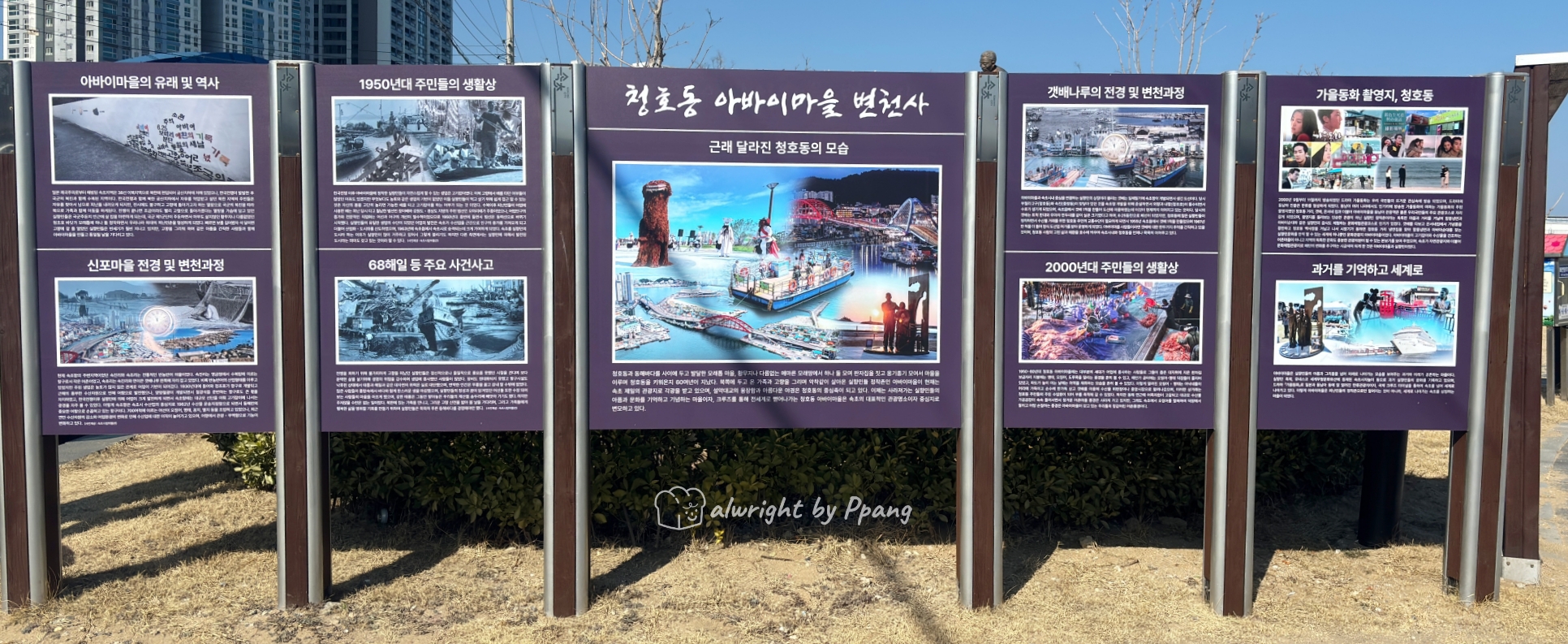 처음에 의아했던 건 아바이벽화마을이 엉뚱한 데 있더란 말이다. 아니 왜 저 섬에 있지 않고 청호동사무소 근처에 있는 거지? 했다 말이다.