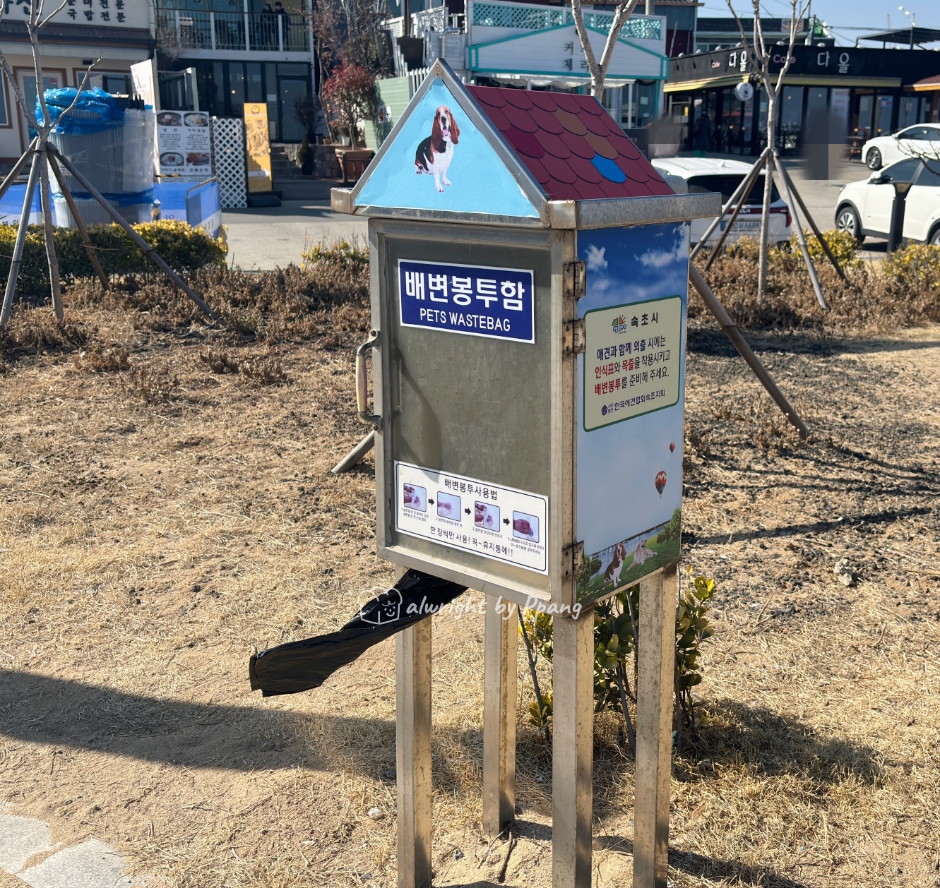 아바이마을 바닷가 앞은 산책하기 좋은 소공원으로 꾸며져 있고 반려견과 산책도 할 수 있다.