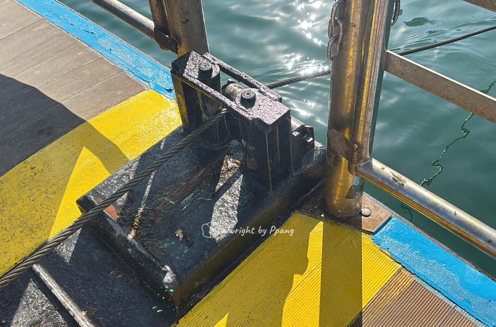 배를 움직이는 쇠줄이다. 선원분이 처음 두어 번 끈 후, 아이가 있을 경우 함께 줄을 끌어 갯배 체험을 해 주신다.