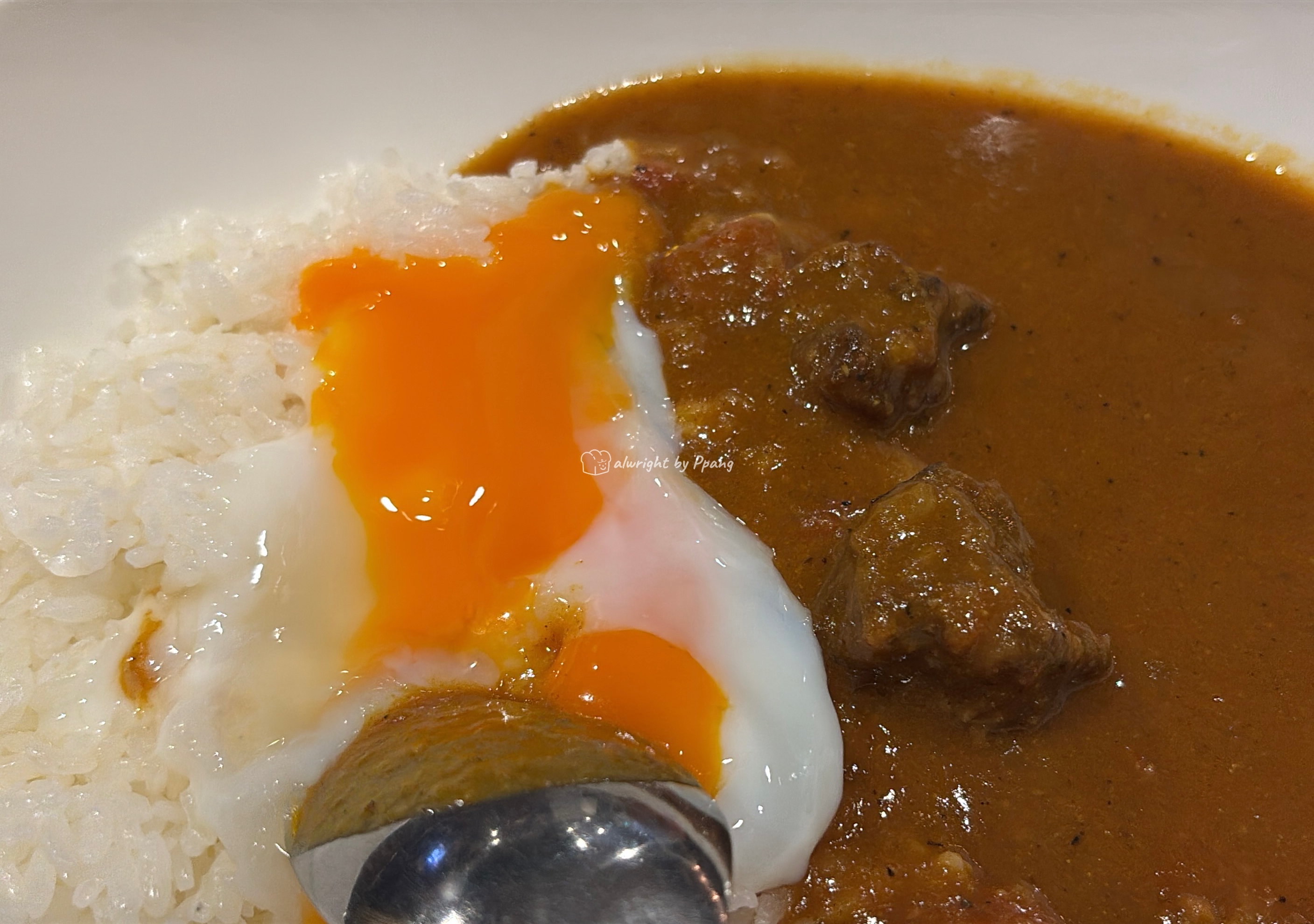 하.. 온천계란 못 잃어. 밥에 터트려 밥+노른자로 먹고, 차차 커리와 섞이게 해서 밥+계란+커리랑도 먹고... 그렇게 경계를 시작으로 섞어 가며 먹는다. 이렇게 먹어야 다양한 맛을 즐길 수 있다.