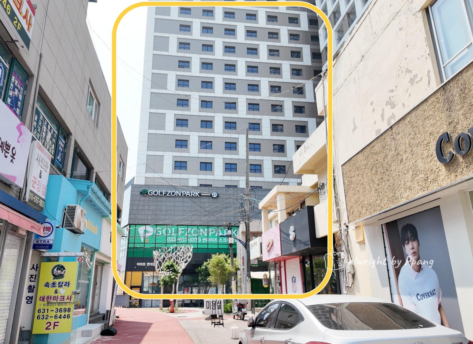 위 사진 왼쪽이 호텔 정문 쪽이고, 위 오른쪽 사진이 후문 쪽이다. 후문 쪽이 속초중앙로와 연결되기 때문에 대중교통을 이용한다면 후문으로 바로 들어갈 수 있다. 주차장은 정문쪽으로 입구가 있다.