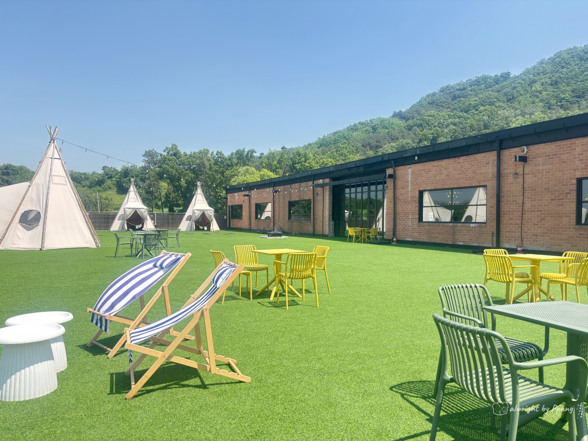 야외 공간에는 10개의 인디언텐트가 설치되어 있다. 텐트는 1시간에 3천원 지불하고 사용할 수 있다.