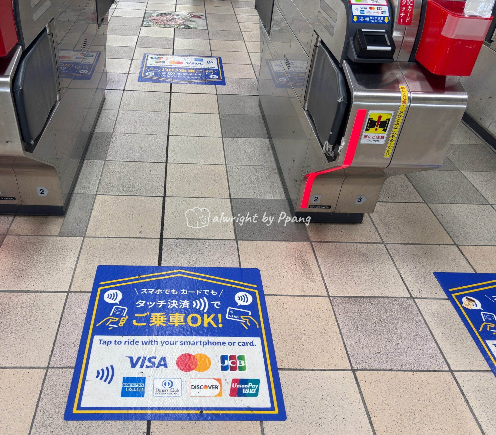 환전도 안 해 가서 돈 찾으려고 머신 찾아다니고 돈 찾는데 30분은 걸렸다. 티켓 사는데 290앤 쓴 후, 컨택리스 결제 되는 거 아는데 10초도 걸리지 않았다. 발권기에서 개찰구로 몸을 돌리니까 이게 있자나. 그니까 미리 좀 둘러볼 걸.