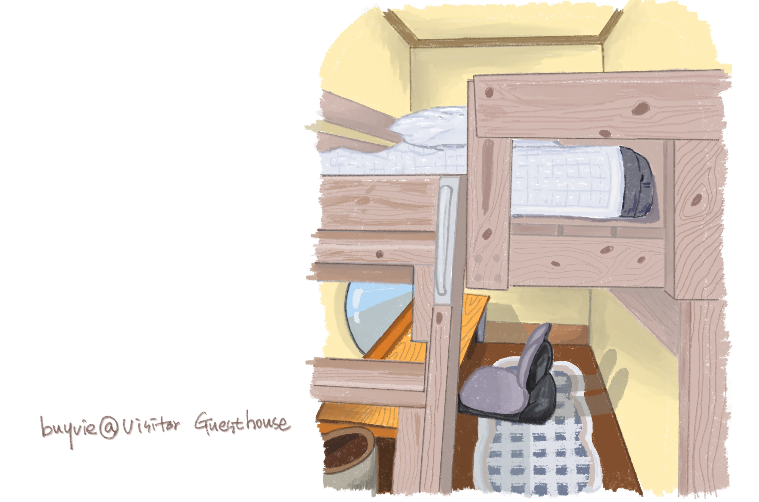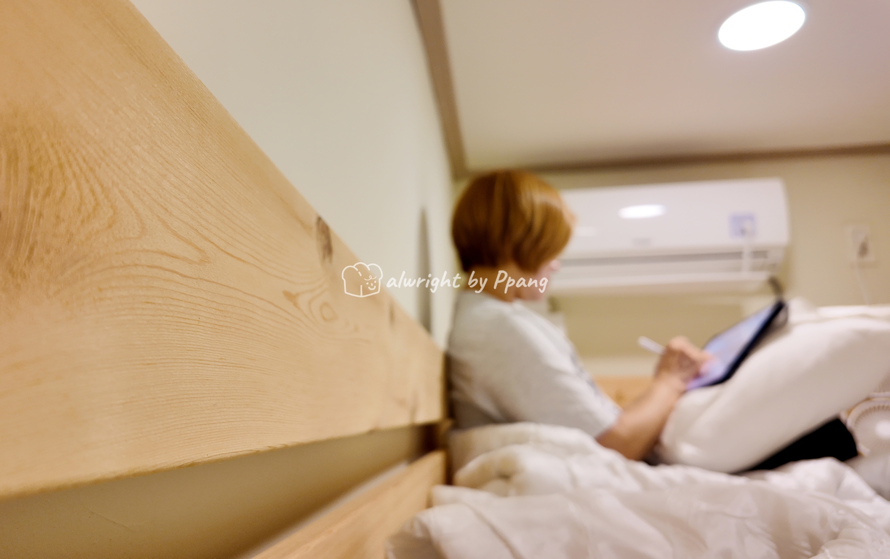 1층 공간도 초집중이지만 2층 침대 공간도 깔끔하고 뭔가 하기 좋은 분위기라 아침에 일어나 자연스럽게 앉아 그림을 그렸다.