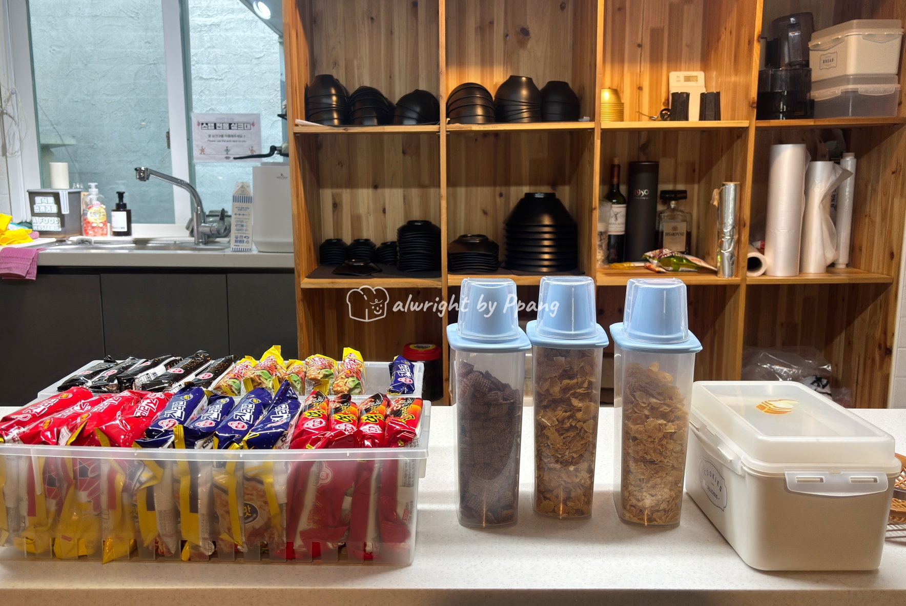 보통 이 정도 게스트하우스는 빵에 잼만 줘도 오케이 인데, 라면과 밥도 있으니까 엄청나게 느껴진다.