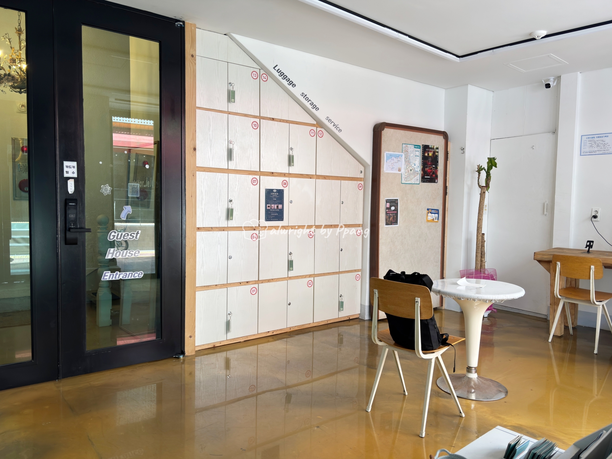 1층에는 셀프 체크인을 위한 키오스크가 있고, 짐을 둘 수 있는 락커가 있다. 요즘 셀프로 운영하는 호텔들이 락커가 없어서 가끔 당황하는데 여기는 짐을 맡길 수 있어서 아주 만족스럽다.
