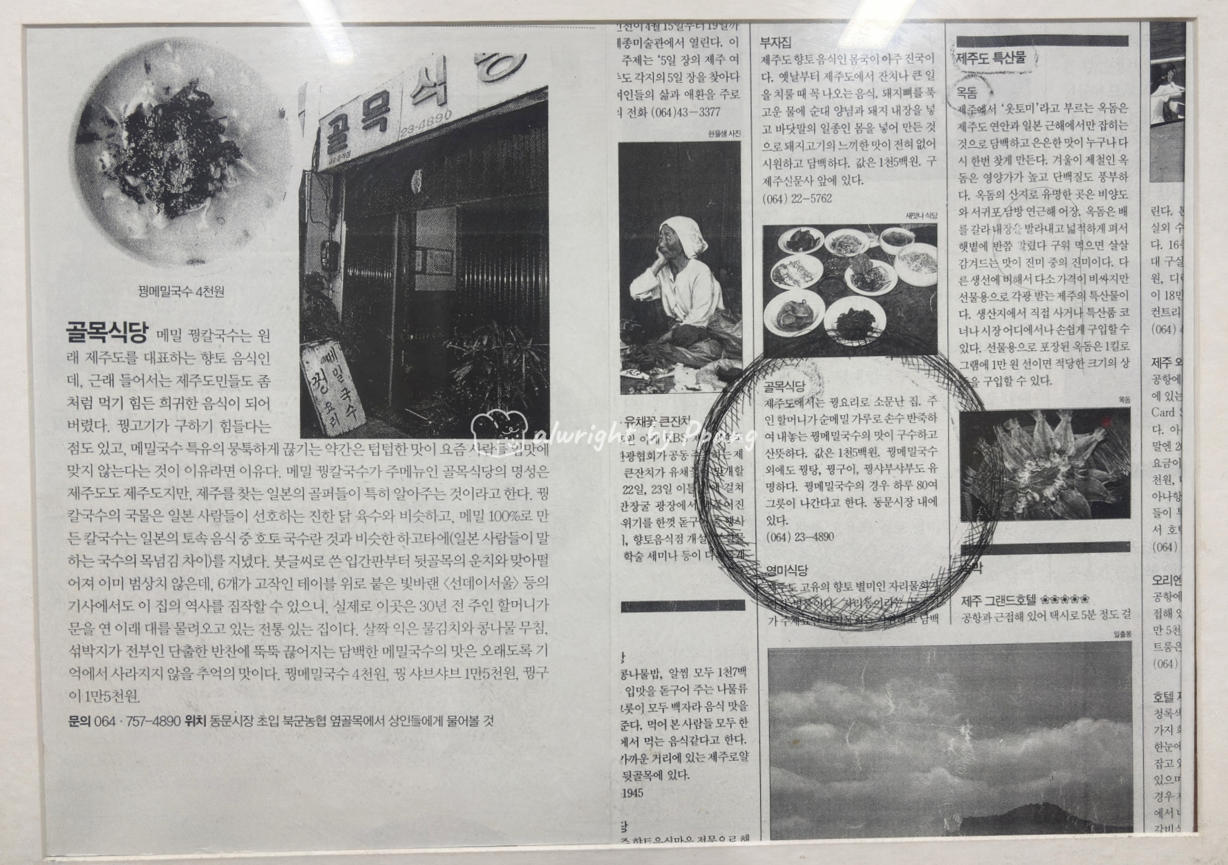 제주 동문시장 골목시장에는 골목식당이 있다. 골목식당은 50년도 넘은 맛집인데 '백종원의 골목식당' 때문에 검색이 잘 되지 않는다. '골목식당 꿩' 까지는 써 줘야 원하는 골목식당이 나온다.