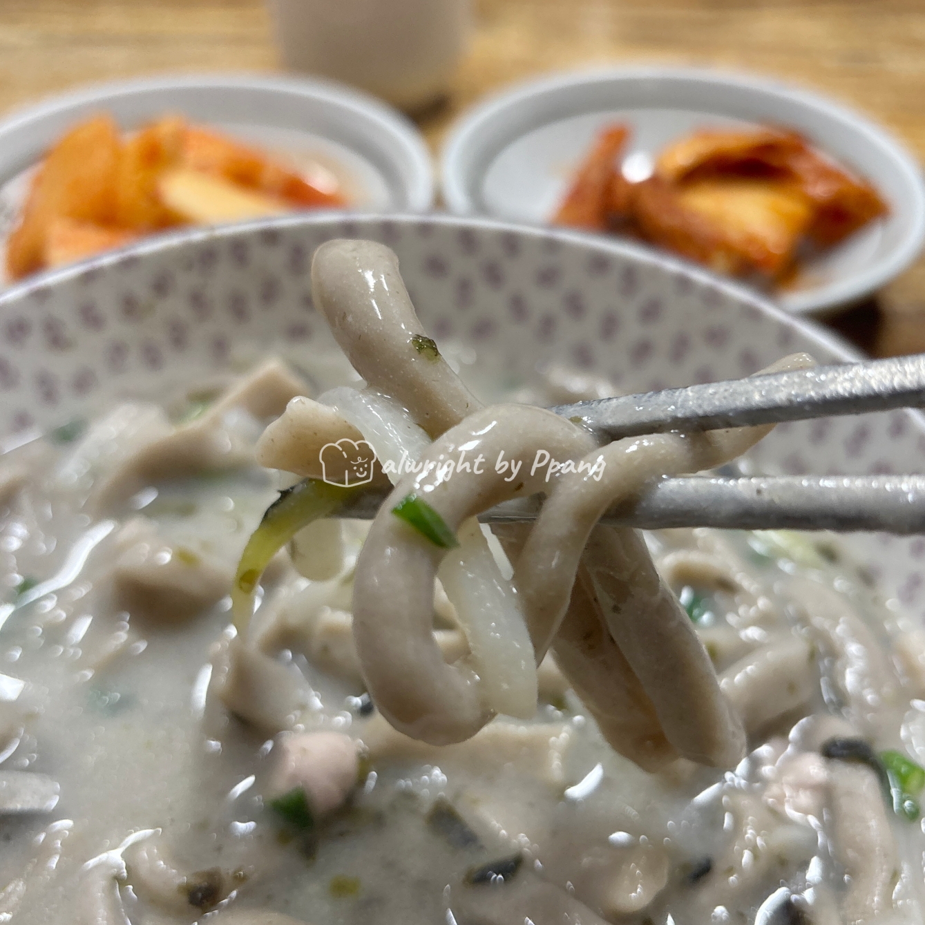 꿩메밀칼국수는 보다시피 뽀얀 국물이다. 이미 구수해 보이는 고러한 비주얼이다.