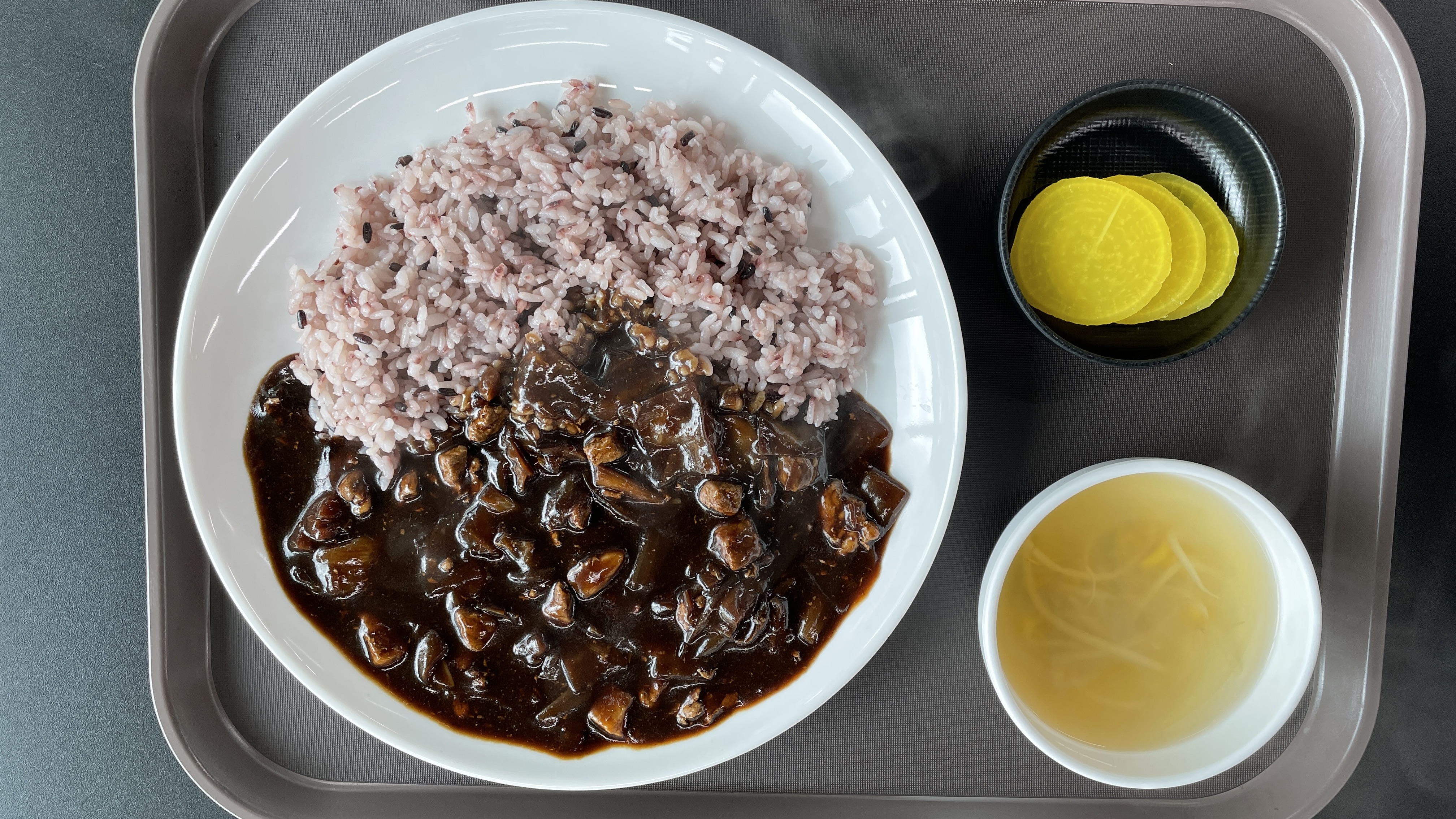 태극문양(?)으로 곱게 모양낸 짜장덮밥에서 모락모락 김이 난다.
