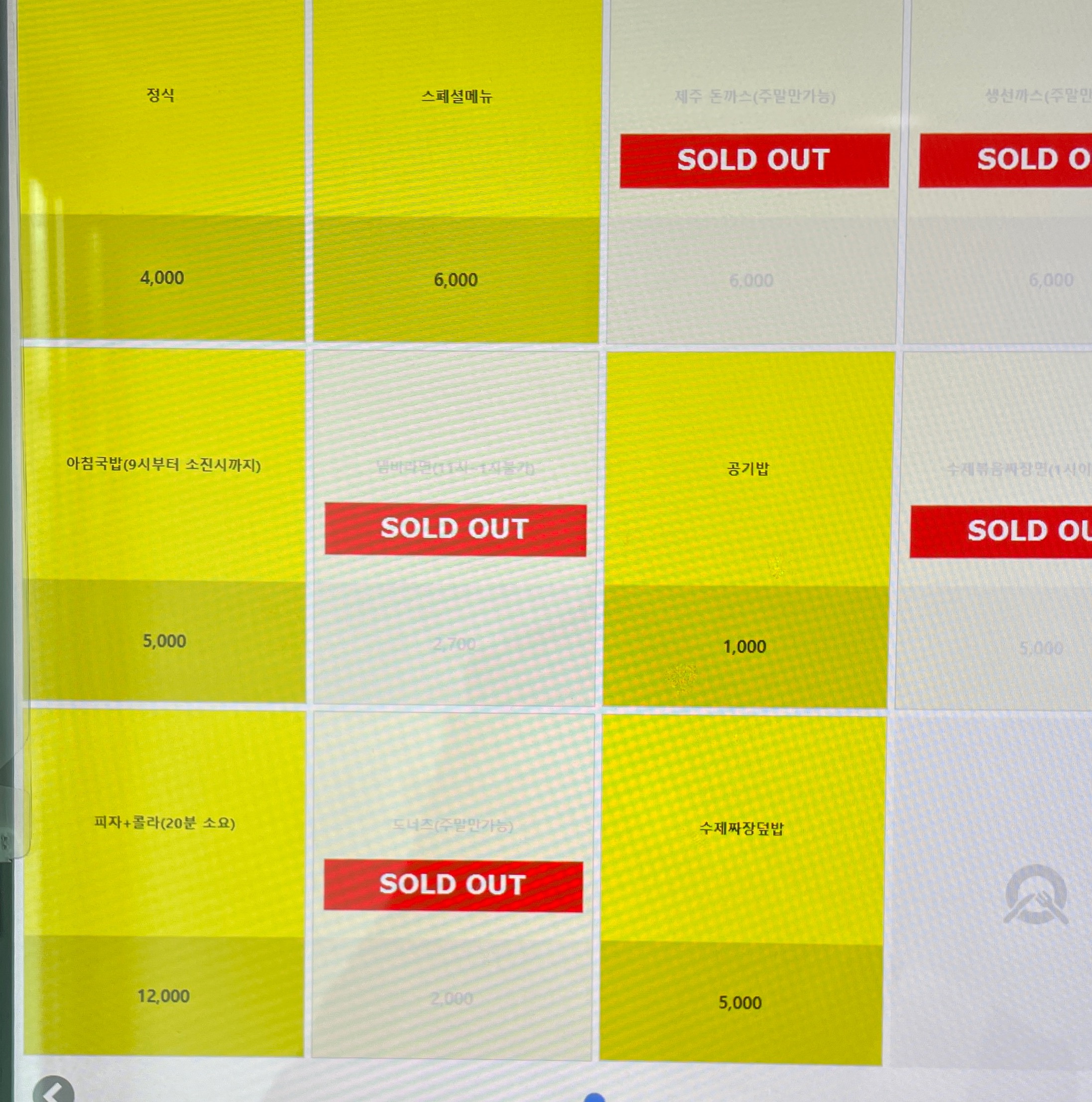 사실 학식(여기 관식?)은 라면인데 12시~1시 사이에는 라면을 서비스 하지 않는다. .. ㅠ. (냄비라면은 2,700원)