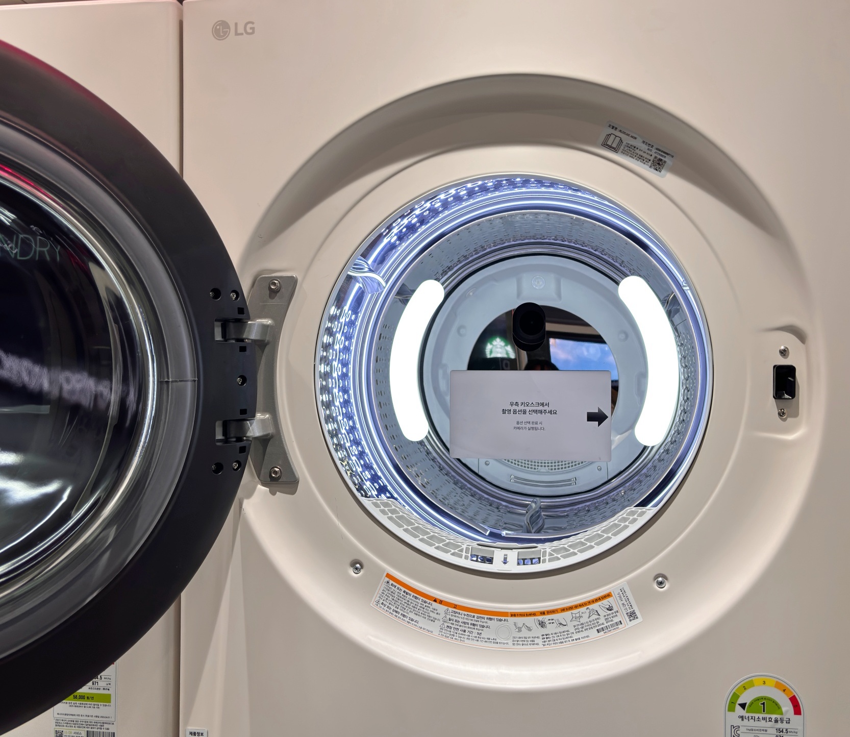 트롬세탁기의 '드럼'에 얼굴을 넣고 사진을 찍는데 드럼의 조명효과가 사진을 꽤 이쁘게 나오게 한다.