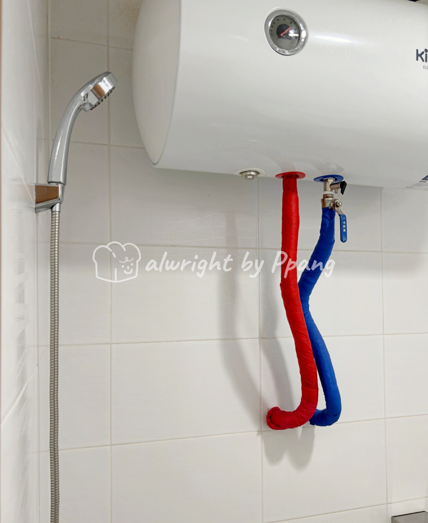온수를 틀고 잠시 기다리면 온수가 나오는데, 온수통이 다 비워지고 나면 30~40분 정도 물이 데워지기를 기다려야 한다.