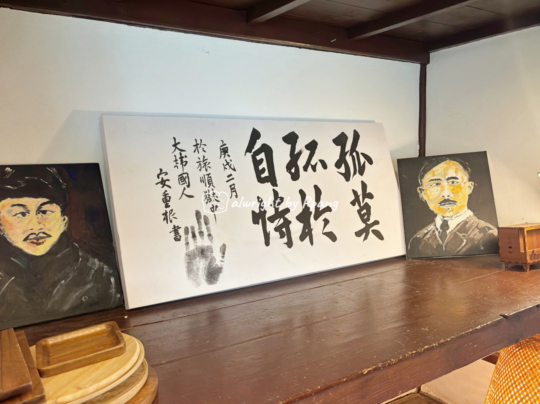 도산 안창호 선생님 얼굴, 안중근 의사의 글씨, 그리고 .. 김좌진 장군인가? 이회영 선생인가? 기억이 날듯 말듯... 죄송합니다... ㅠ..