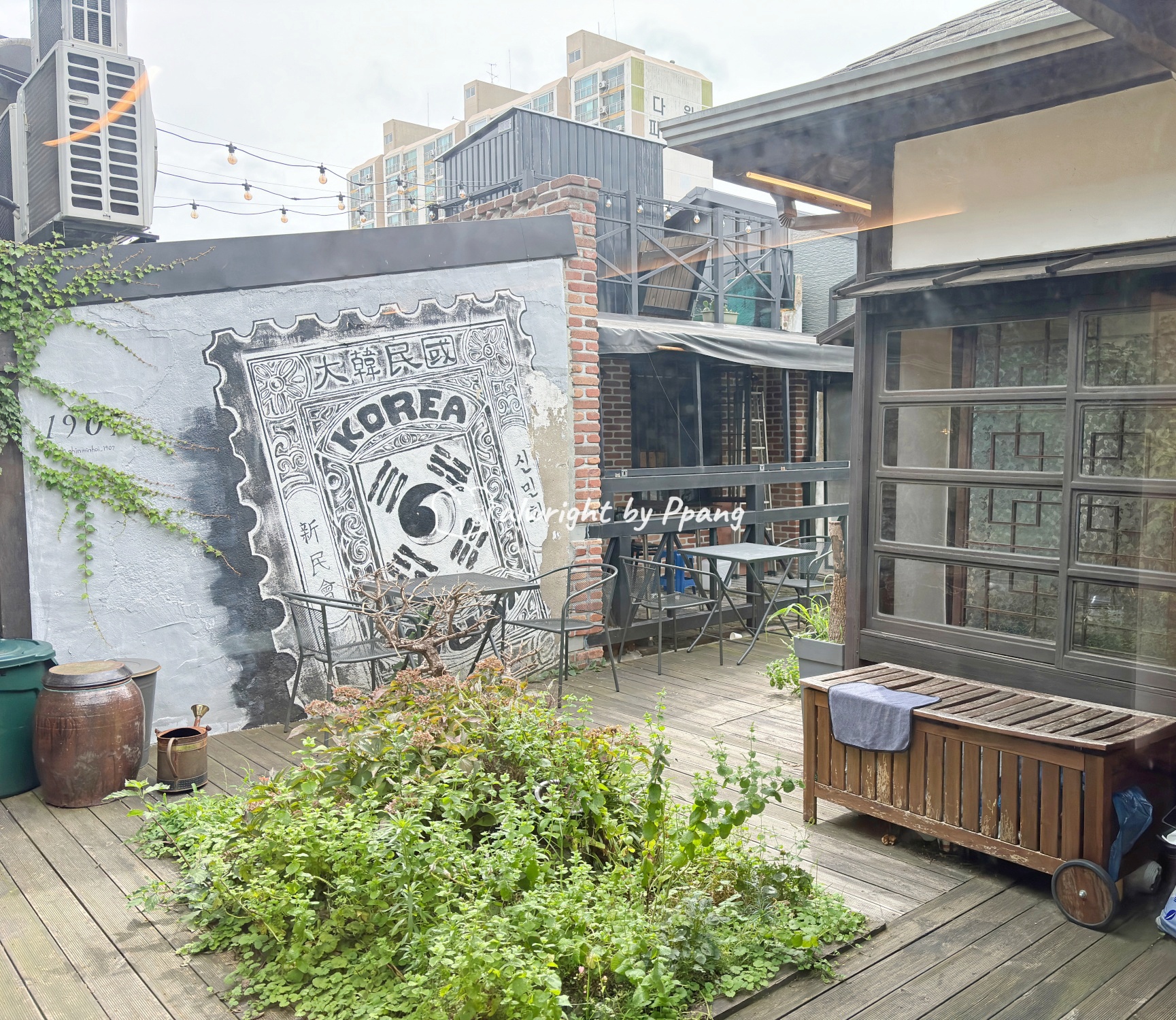 뒷문으로 이어지는 마당에는 구한국 우표를 베리에이션 하여 그려 넣었다.