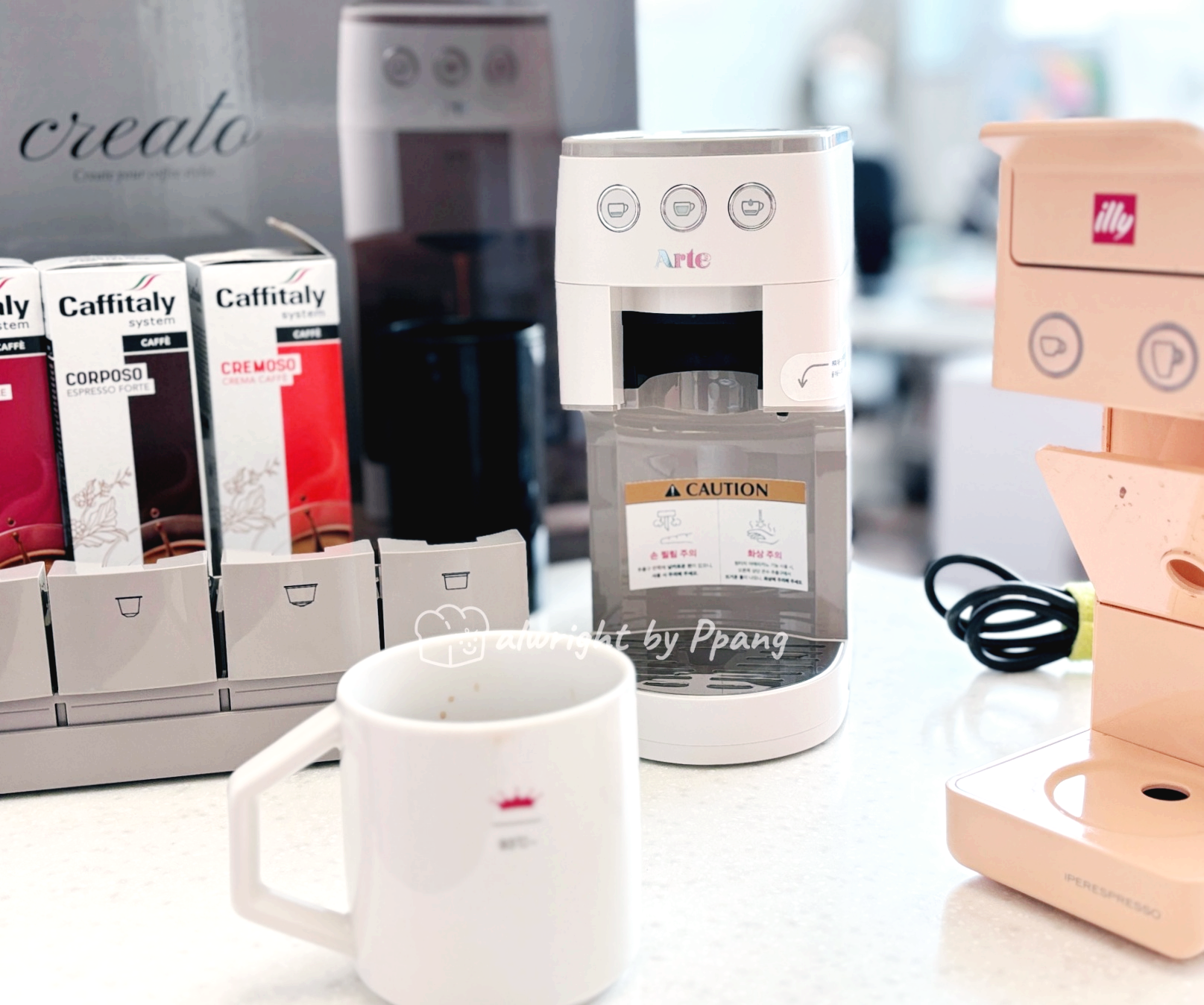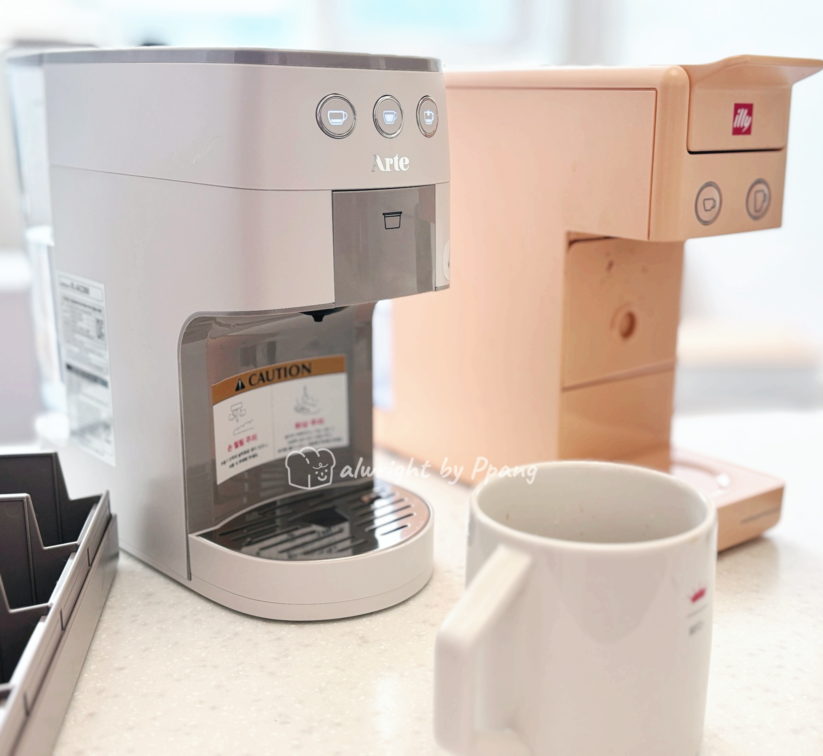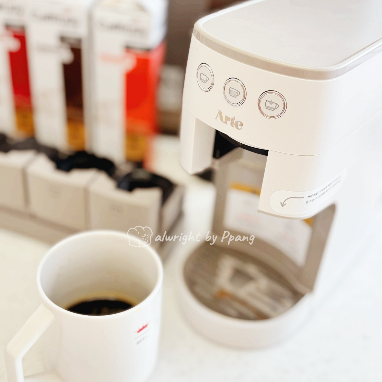 난 좀 특이하게 생겼거나 아주 심플한 디자인을 좋아하는데 아르떼 크레아또 캡슐커피머신은 노멀한 편이다. 이름이 '아르떼' 인데 이름값은 뭐... 썩... 뭐 취향이니까. 예쁘다는 생각은 들지 않지만 덩치가 작아서 마음에 든다. 제주에서 컴백 후 집이 아주 좁다.