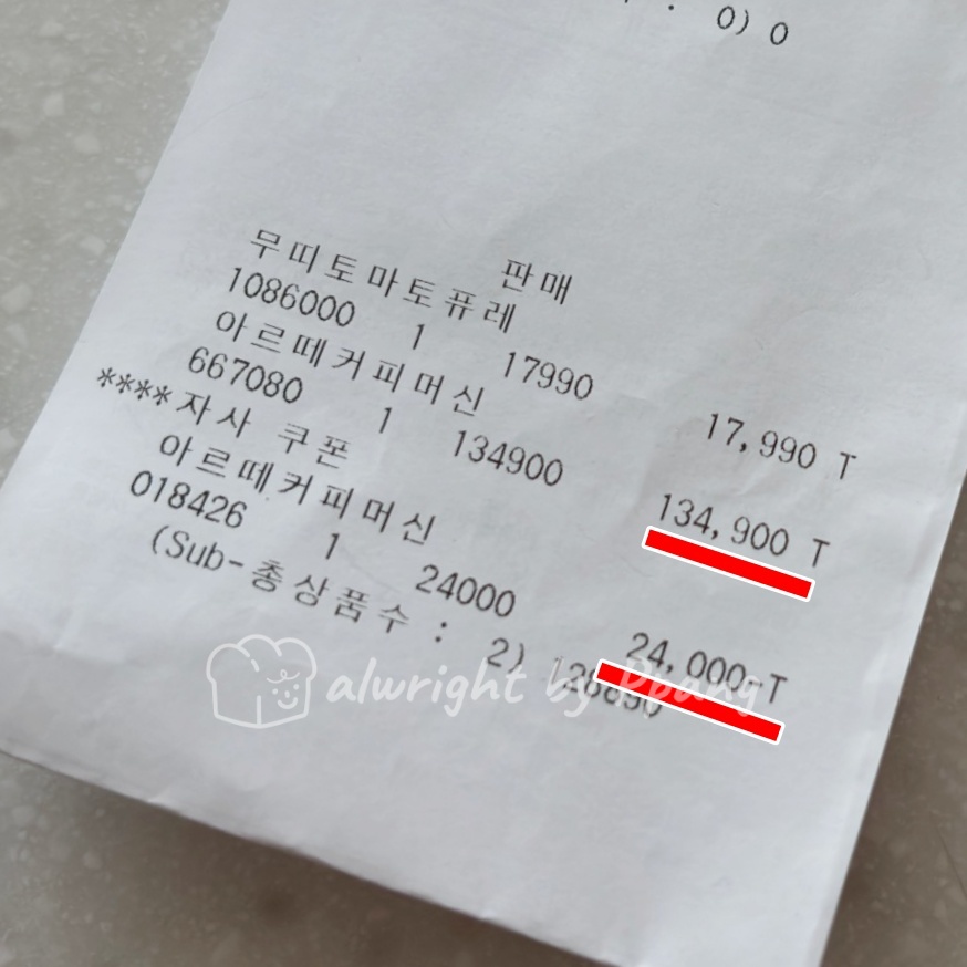 추석 전날 엄마 사다 드릴 게 있어서 코스트코에 갔는데 마침내 아르떼 커피머신이 세일을 한다. 24,000원 세일로 110,900원에 구입이 가능해졌다. 타임 이즈 나우.