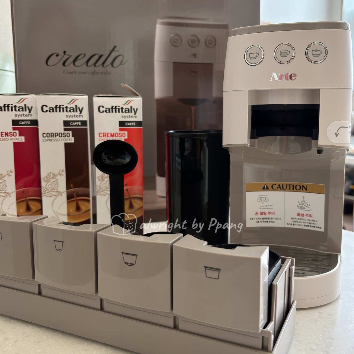 코스트코 아르떼 크레아또 캡슐커피머신을 구매했다. 4가지 어댑터가 있어 3가지 네스프레소, 돌체구스토, 카피탈리 캡슐과 그라운드 원두 드립까지 가능해졌다.