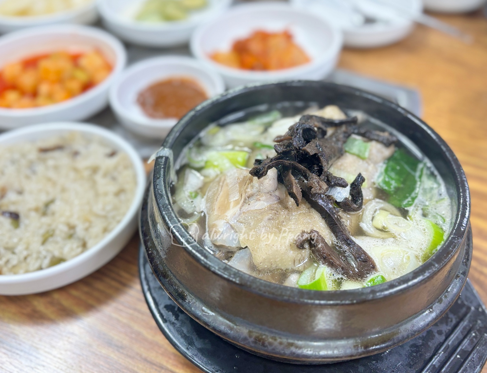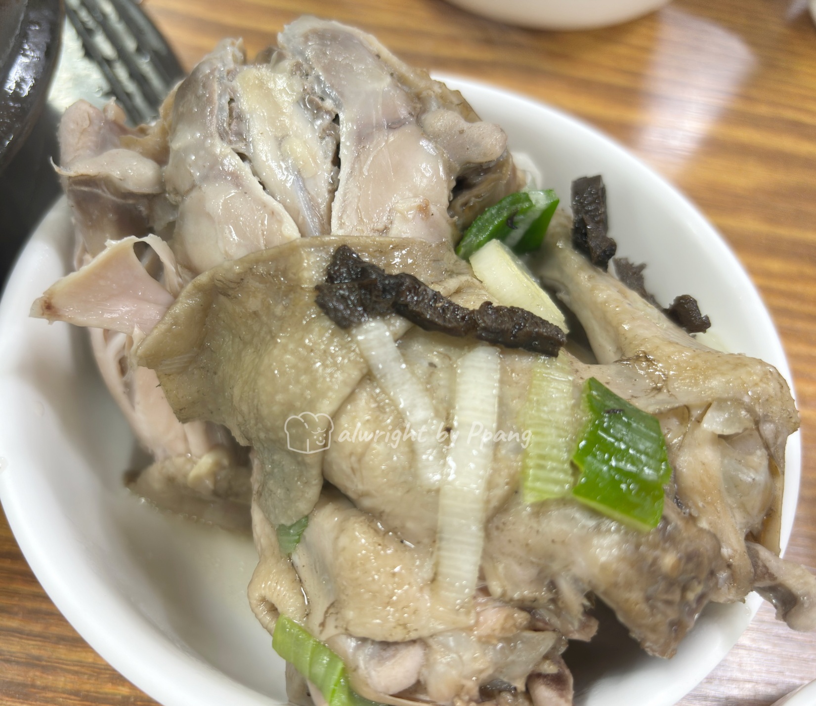주문한 능이버섯삼계탕이 나왔다. 검정색 고명이 능이버섯이다. 사실 난 이날 능이버섯을 첨 먹어봤다.
