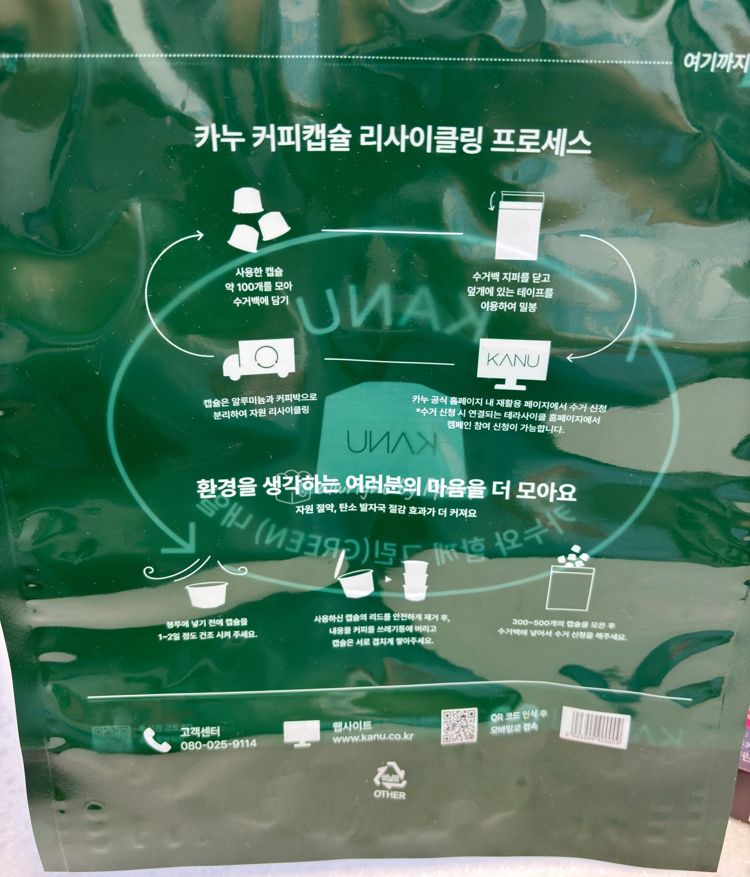 캡슐은 알루미늄 캡슐로 재활용이 가능합니다. 그래서 재활용백 프로그램이 있더라고요. ↓