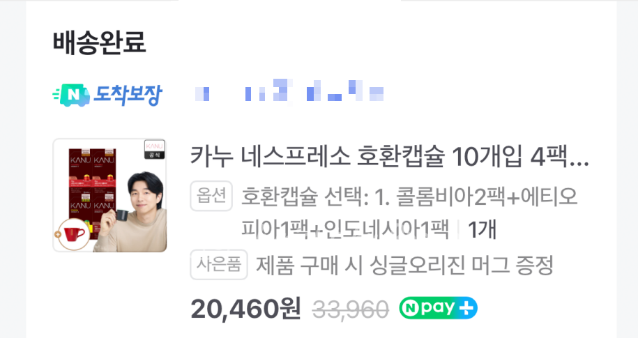 저는 8천원 쿠폰 혜택과 알림설정으로 1,000원 쿠폰을 더 받고 포인트가 몇 백원 있엇던 것 같습니다. 그렇게 해서 네스프레소 호환 캡슐 40개와 머그잔을 20,460원에 구매했습니다. 그렇게 하니 머그잔은 계산에서 제외하고, 캡슐 가격만 개당 511.5원이네요.