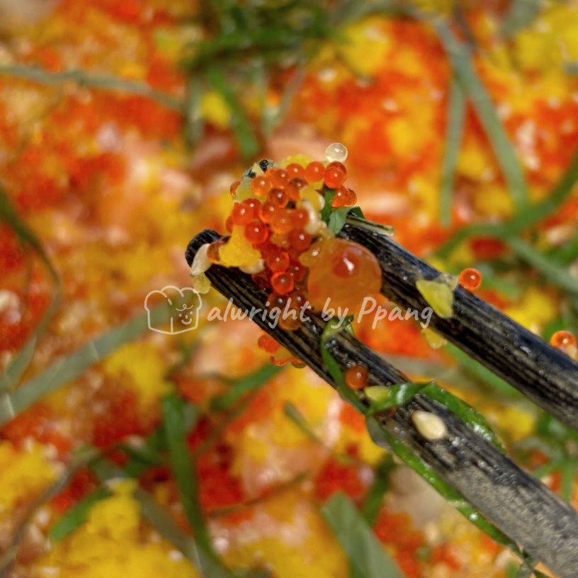 다진 단무지와 날치알, 약간의 연어알 덕분에 식감 너무 행복하다. 혼자 사 먹으면 좋은 게 이런 거 맘껏 내맘대로 골라 먹을 수 있다. ㅋㅋ..