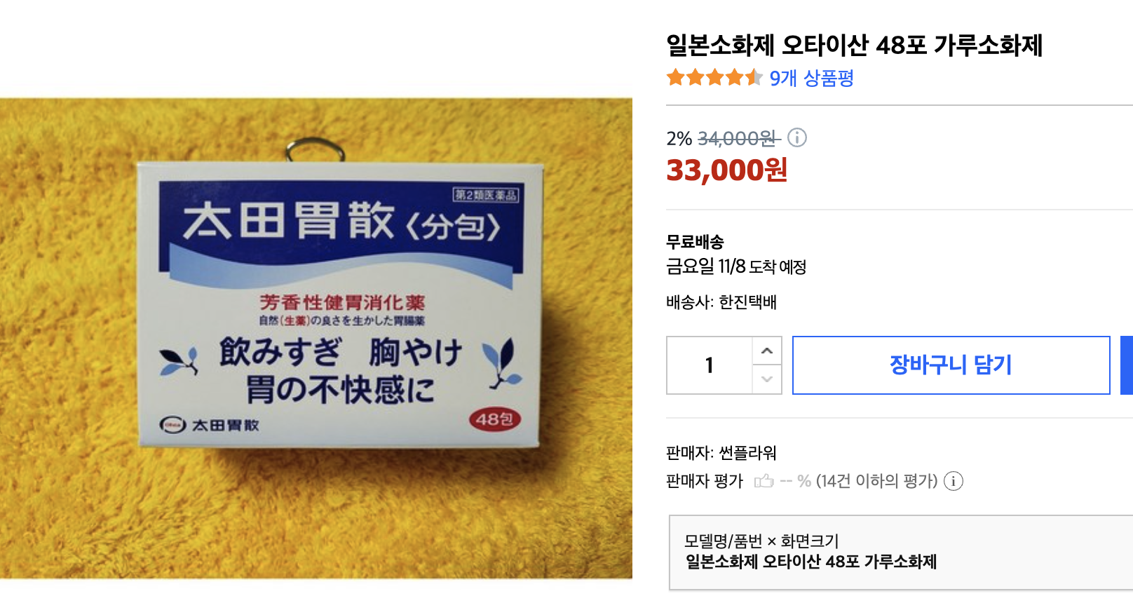 지난 사가여행에서 일행이 알려준 오타이산은 일본 국민소화제라면서요.. 그때 완전 효과 보고 당연하다는 듯 하나 담아왔습니다. 가루약이라 먹기가 좀 그렇긴 한데 최근 먹어본 소화제 중 가장 효과가 좋았어요.