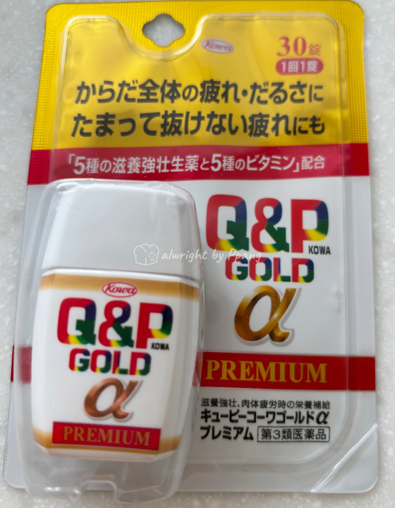 Q&P가 인기많은 피로회복제인데요, 드링크제로 잘 팔려서 2~3개 묶음판매도 합니다. 저는 여행중이니 알약으로 30개 들이 구매해 보았습니다. 이 시리즈가 다양하게 많이 나오더라고요. 이게 골드에, 알파에 프리미엄에 뭐 좋은 말은 다 써 있고 제일 밀어주는 버전인지 포장단위도 다양하고 디스플레이도 전면배치 해 놓았더라고요.