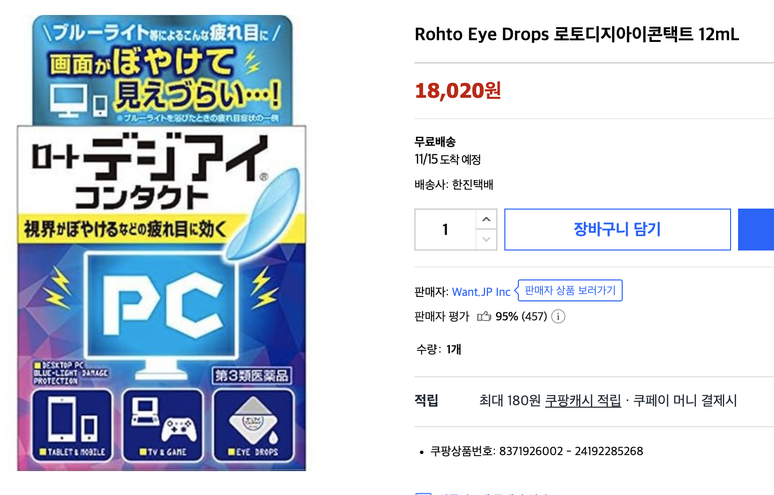 블루스크린 많이 보는 눈에 좋다고 해서 구매한 안약입니다.