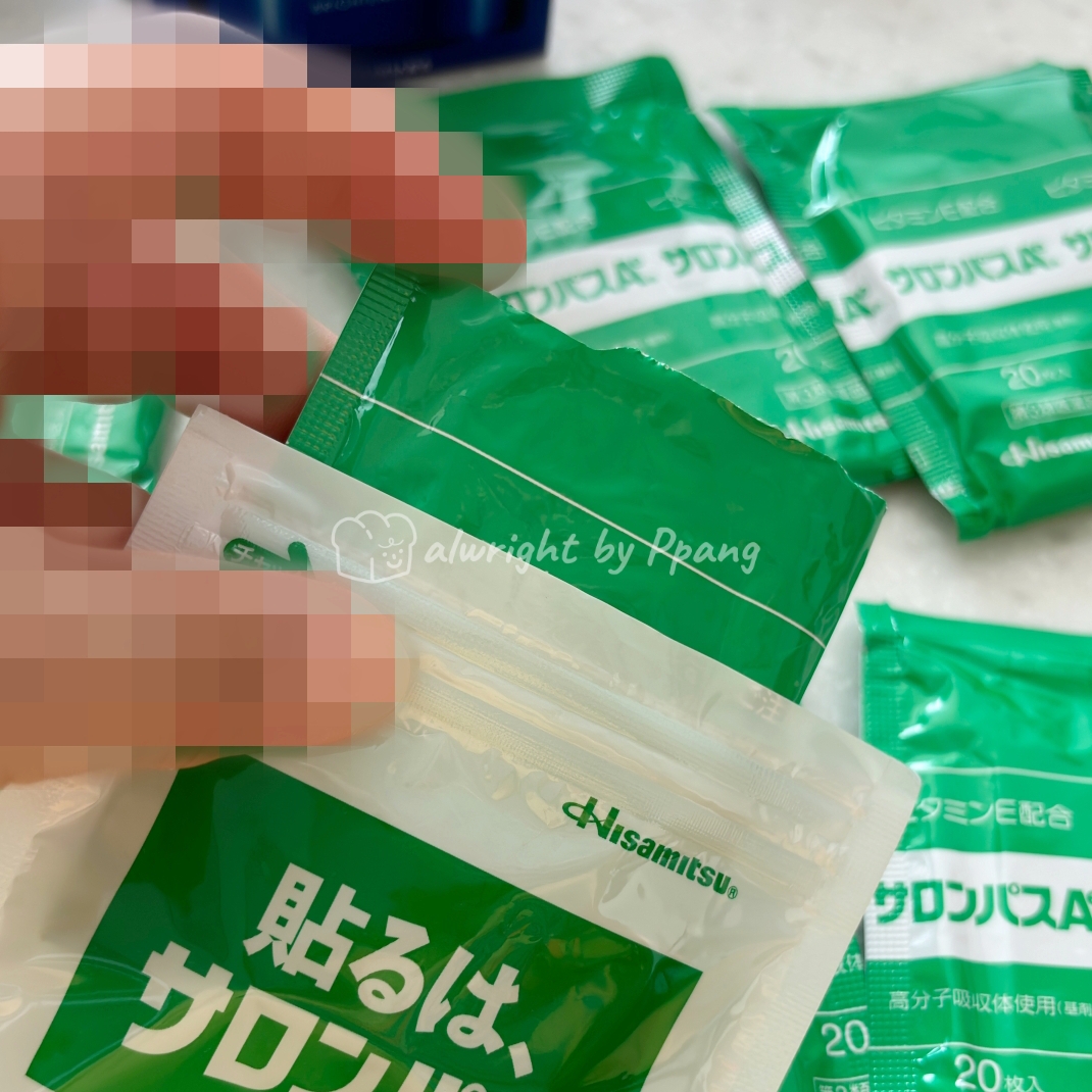 팩을 열면 한 피스 당 양면으로 두장씩 붙어 있어서 10pcs 들어 있고, 우리 다 아는 시원~한 파스향이 납니다. 전 파스냄새 좋아하거등요.