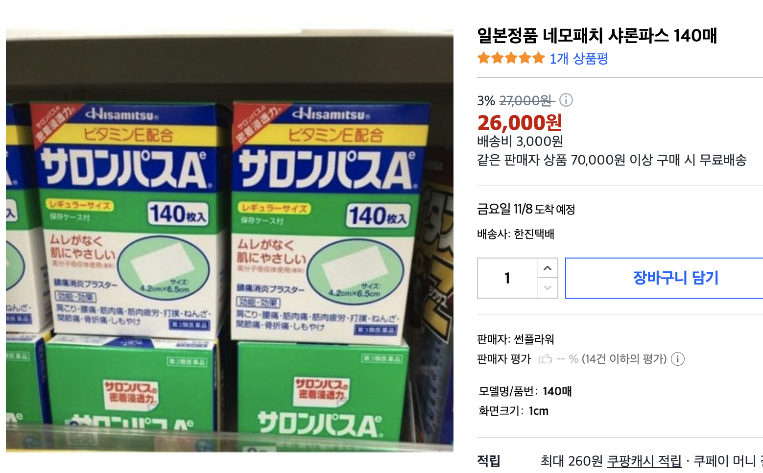 돈키호테에서 1,080엔에 구매하였고, 쿠팡에 같은 사이즈 제품을 판매하고 있더라고요. 쿠팡가격은 26,000원 배송비 3천원 별도 입니다.