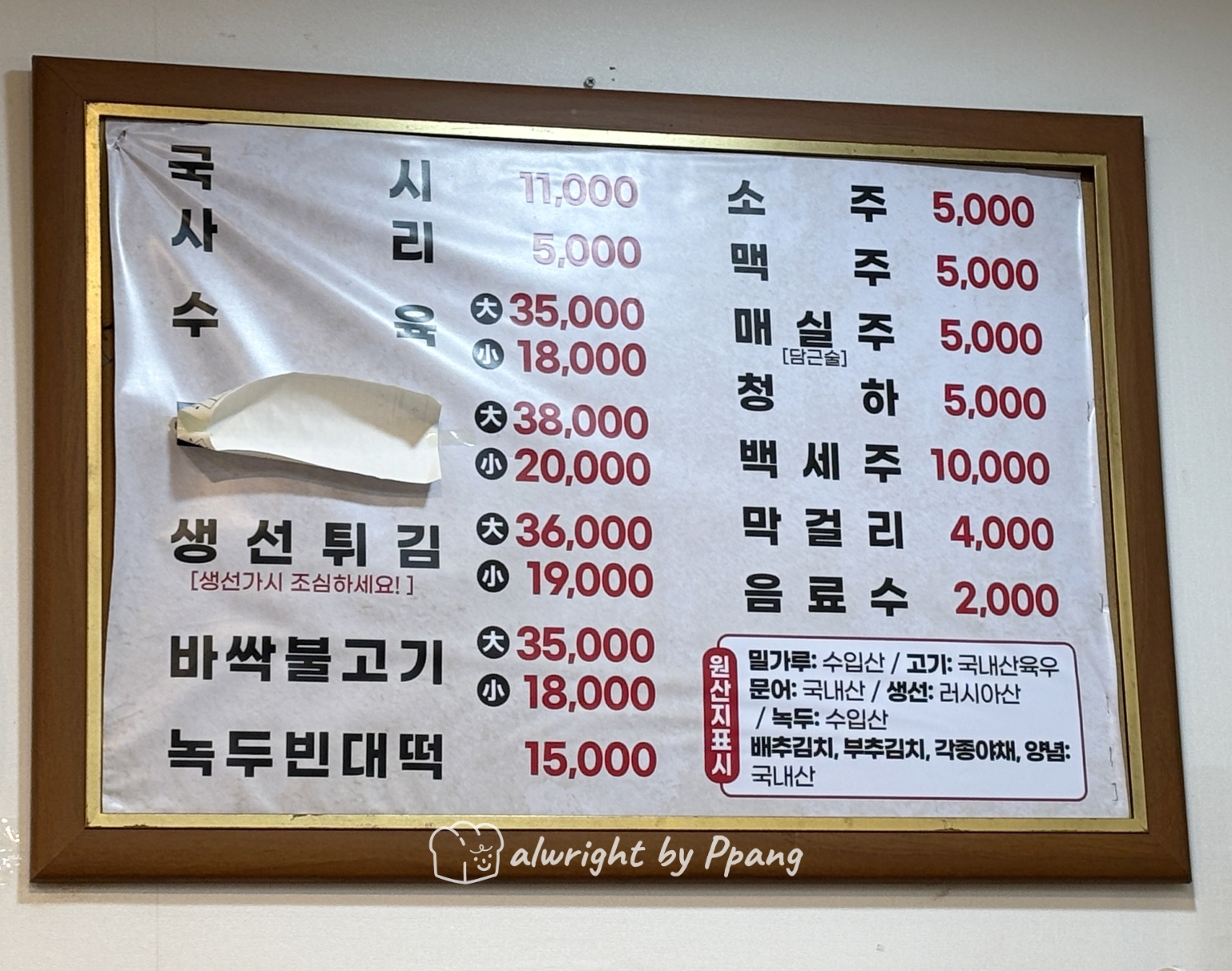 가건물 분위기 물씬, 진지한 서체의 간판, 민트 아니 '옥색'이라 말해야 할 것 같은 페인트 색까지 일단 맛있을 듯 분위기이다.