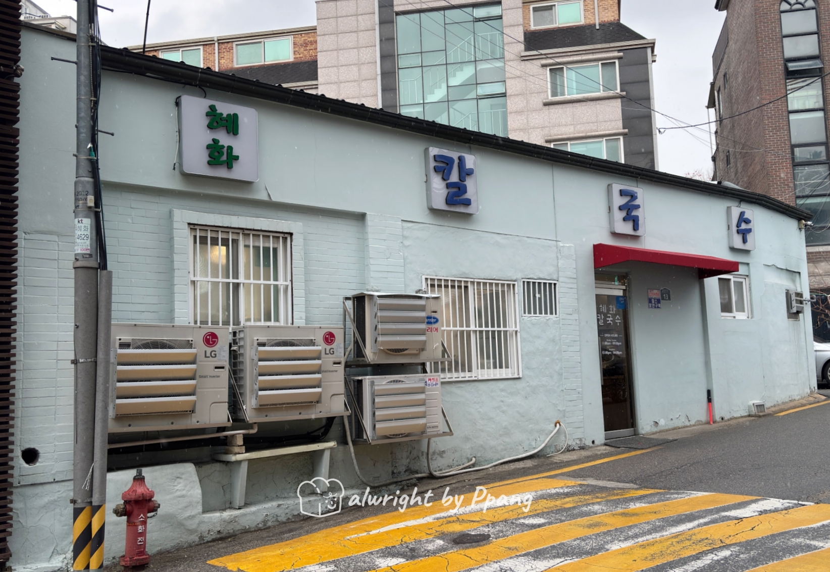 혜화칼국수는 겉에서 봐도 노포다. 혜화동 로터리에서 혜화초등학교 방면으로 가는 길 바로 직전에 샛길이 하나 있는데 여기 자리잡고 있다.
