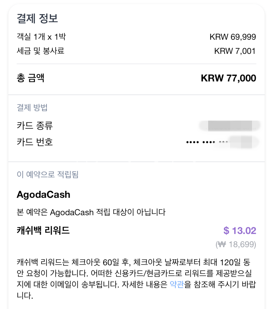 보통 글로스터호텔 가격은 10만원 내외이다. 나는 (누누히 말하지만) 시간을 두고 특가를 기다리는 쪽이라 결국 가격이 좋을 때 숙박하였다. 현금결제 77,000원 하였고, 캐쉬백으로 13달러 나올 예정이다.