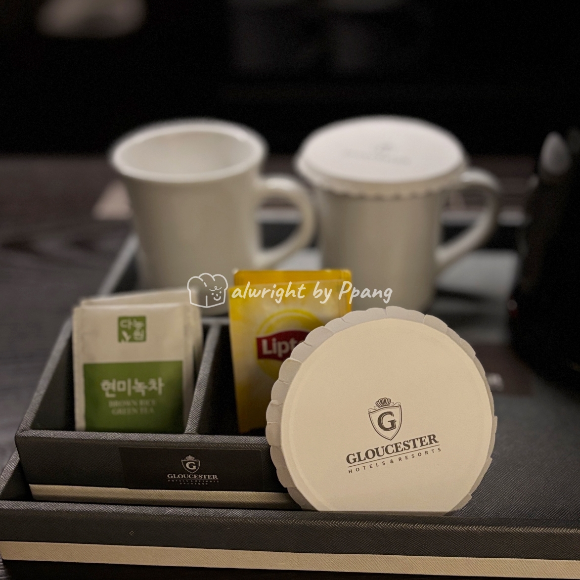 전기주전자, 머그잔과 녹차, 홍차가 있다. 이 부분에서 다시한번 글로체스터 룩쿽과 한 회사인가? 생각했다. 보통은 커피가 있는데 홍차가 있어서 말이다. 영국 느낌이 나잖아. 아.. 그러고 보니 글로체스터가 영국의 지명, 어디라고 한다. (왜 이렇게 집착 하는거야.)