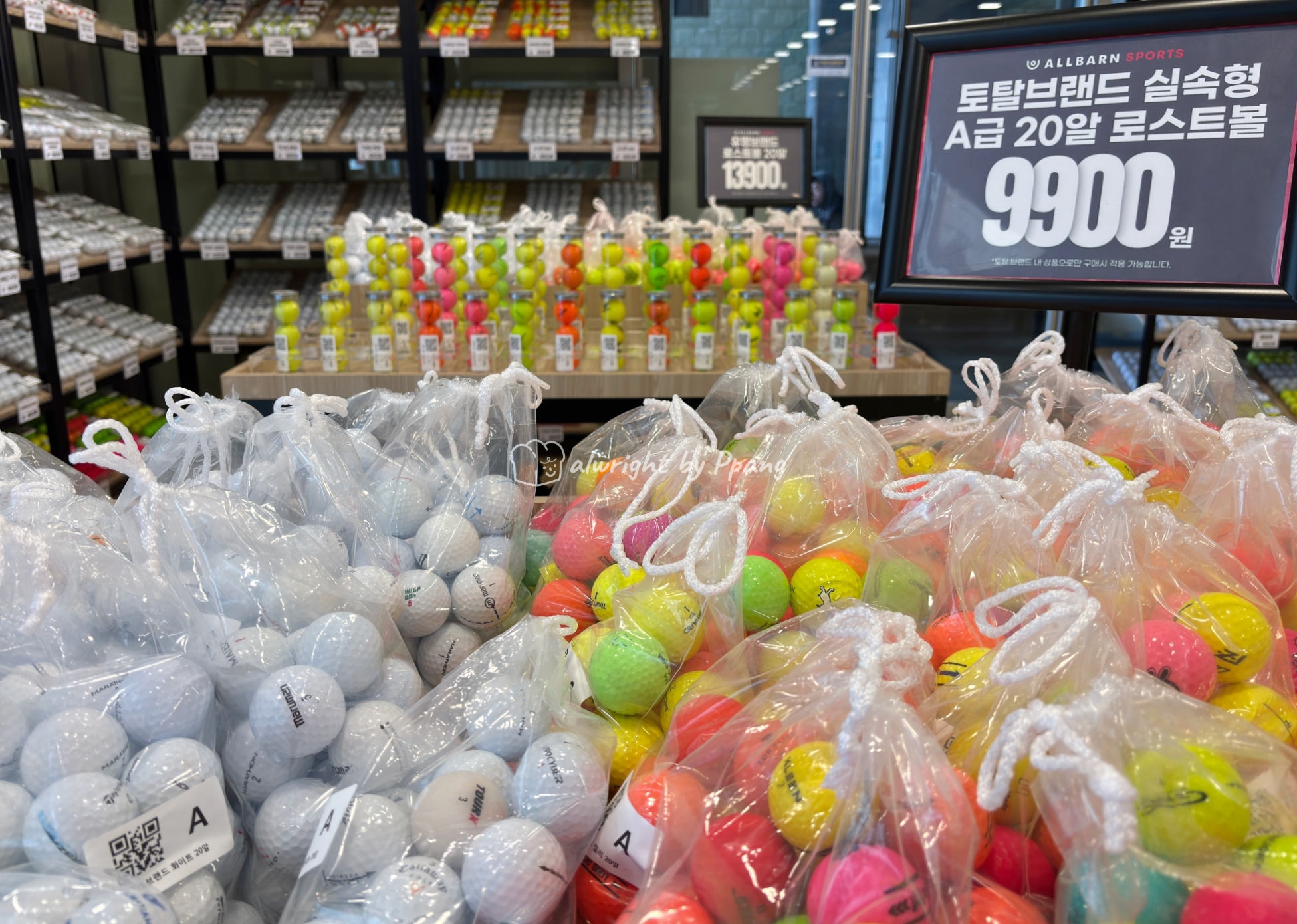 1층에 로비가 있고 한쪽에는 로스트볼과 골프 액세서리를 판매한다. 제주에 골프 여행 오시는 분들이 많으니 요렇게 실속있는 코너를 운영한다. 20알에 9,900원부터 실속형으로 있고, 브랜드별로도 판매한다.