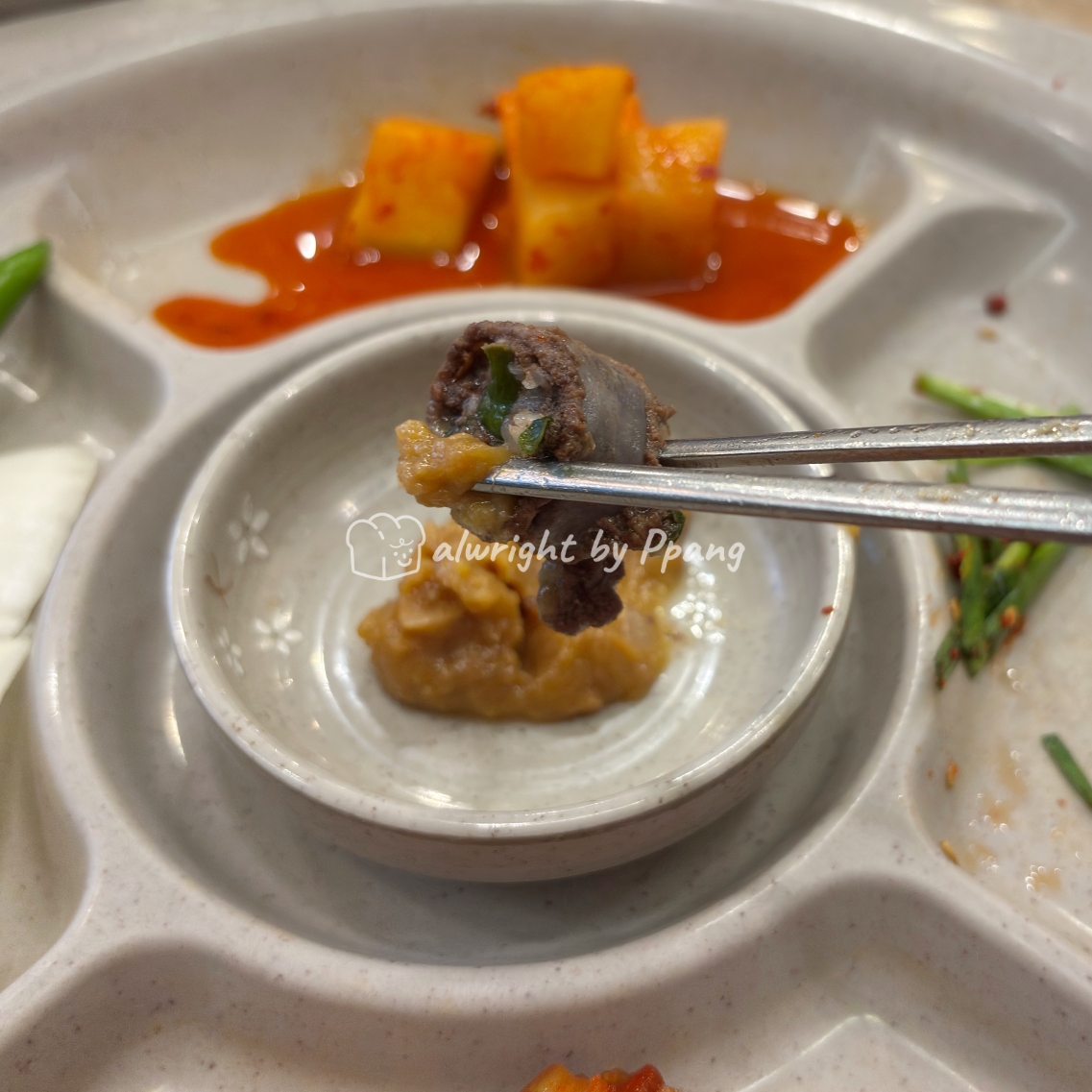 진한 국물엔 진한 양념이지. 김치와 잘 어울린다.
