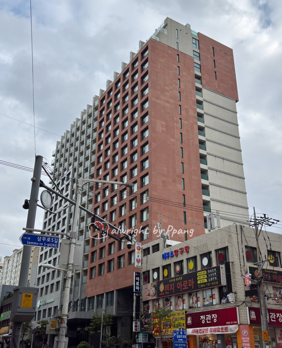 내가 짐작하는 이유는 이 호텔이 오션뷰가 없기 때문인 듯 하다. 오션뷰 방향에 글로스터 호텔이 딱 막고 있거든. 차라리 뒷편 객실은 한라산이 보일 수도 있다. 그렇지만 여행자들은 대체로 한라산뷰에는 그닥 관심이 없다. 제주 하면 오션뷰니까.. 그리하여 제주 호텔은 바다가 보이냐, 안보이냐에 따라 가격 차이가 나는 듯 하다. 물론 이런 대원칙을 무시하고, 한 때 젤 비쌌던 포도 호텔은 산 속에 있다는 예외가 있긴 하다.