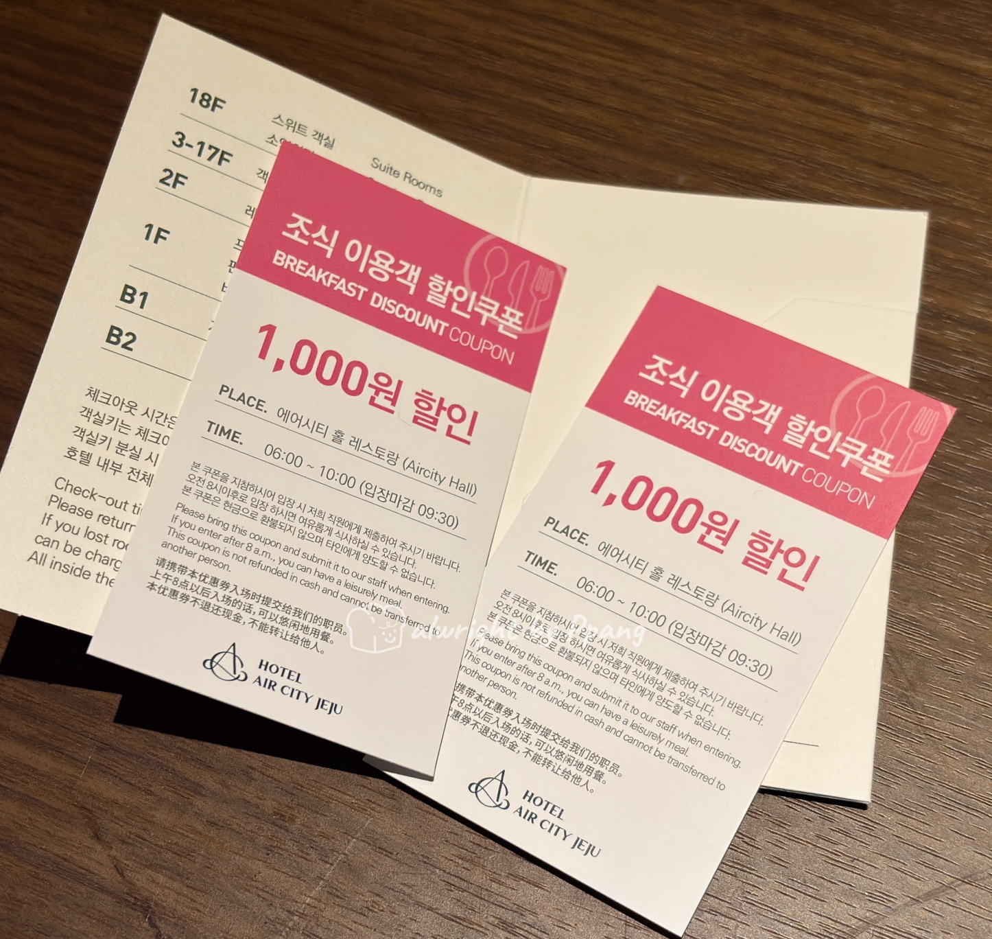 객실 키를 받을 때 쿠폰을 주는데 쿠폰에는 에어시티홀 레스토랑이라 써 있지만 도향에 가져가도 된다. 1,000원 할인이라 써 있지만 15,000원 또는 13,000원으로 2 ~ 3,000원 할인해 준다. 그러니까 이 할인티켓은 호텔에어시티에 숙박했다는 증빙자료? 정도의 역할이다. 여튼 밥 먹으러 갈 때 꼭 필요하고 현장에서 결제하면 된다.