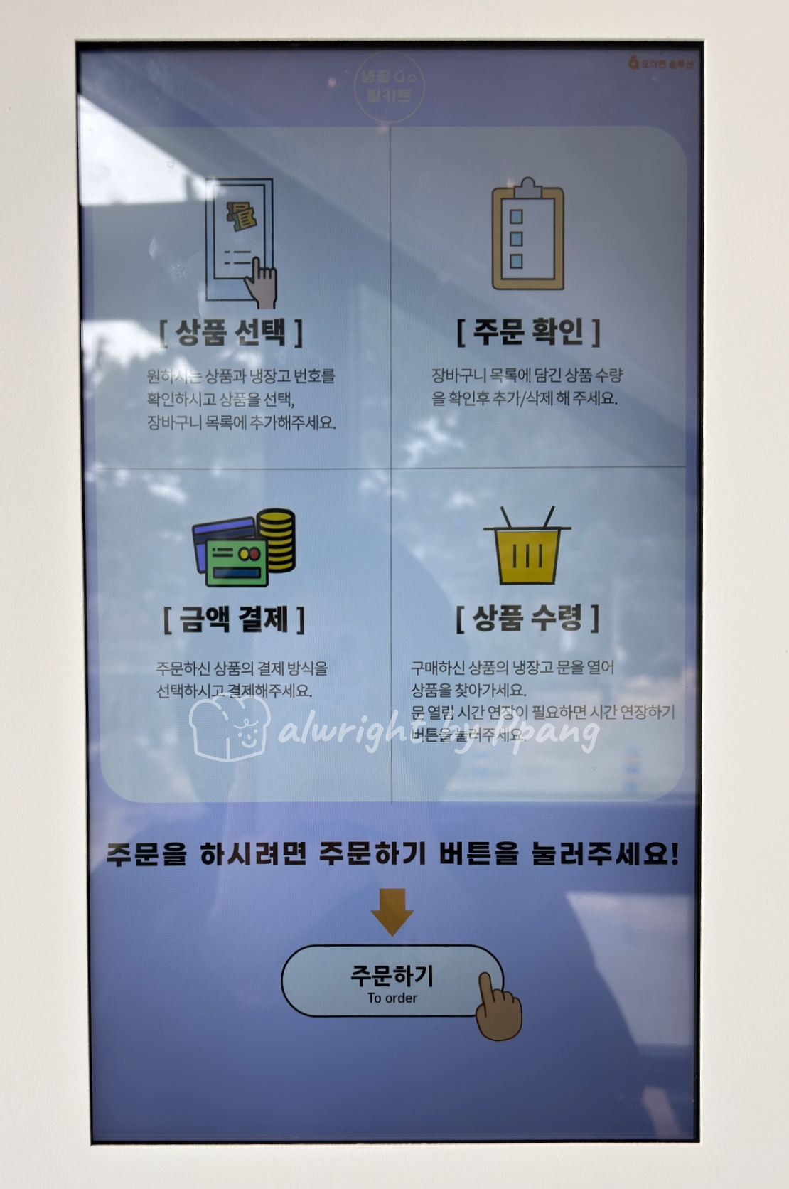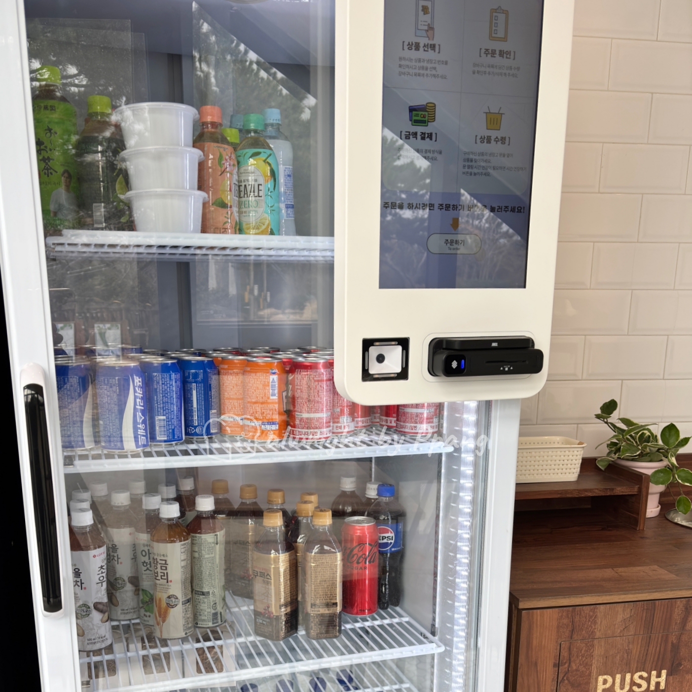자판기 옆에 있는 냉장고 앞에는 별도의 주문 키오스크가 있다. 냉장고 안에 있는 음료를 구매할 때 사용하면 된다.
