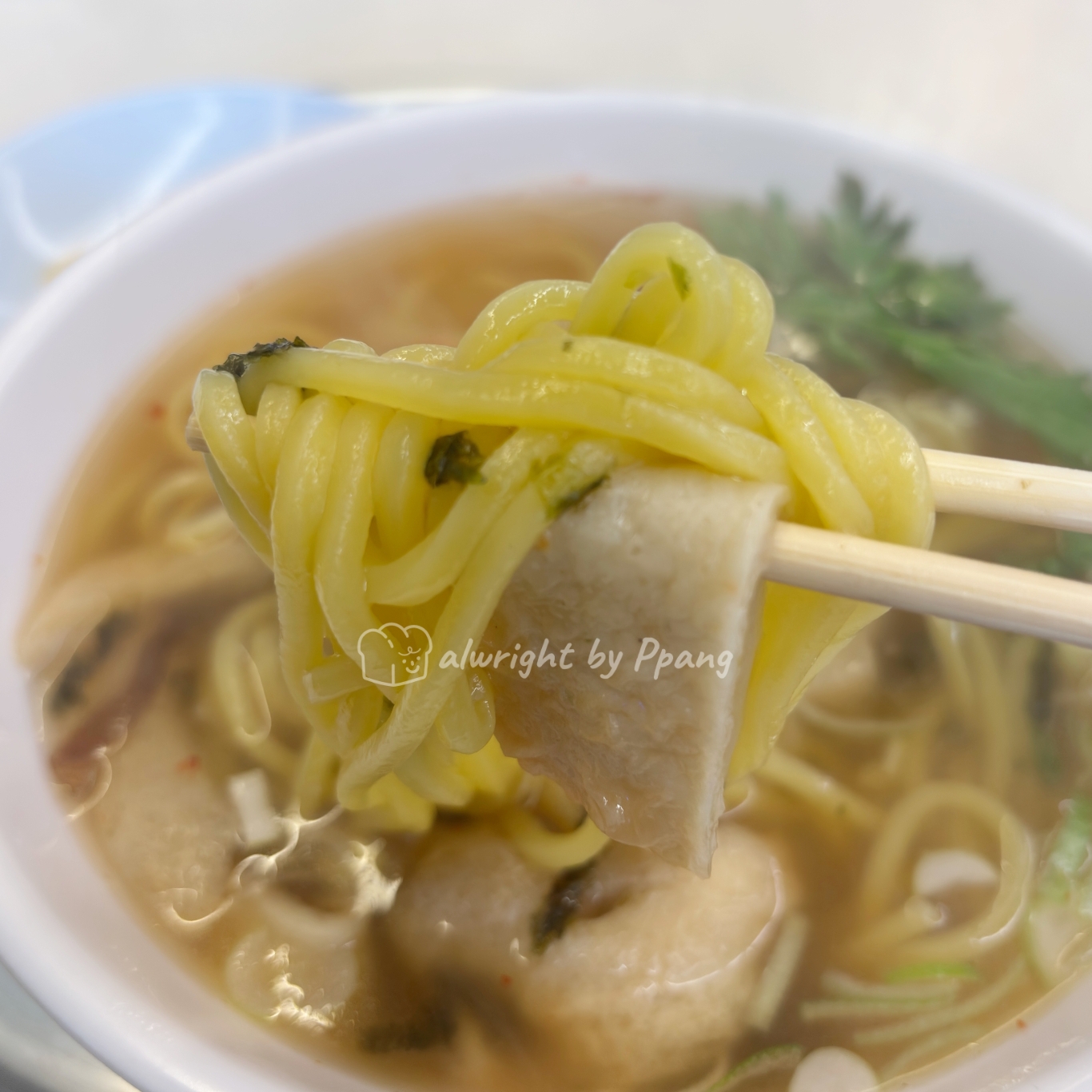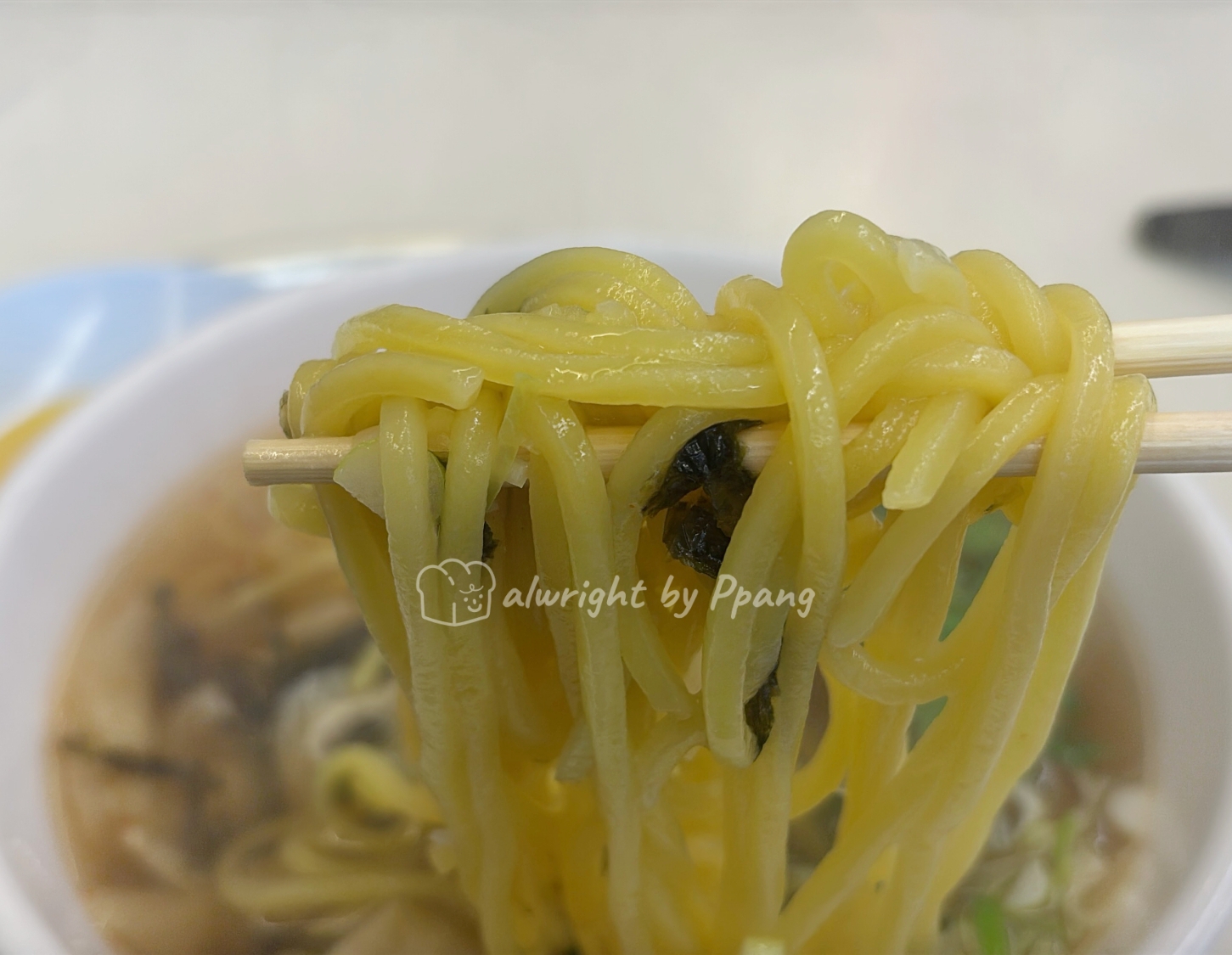면은 하얀 면이 아니고 노란색 약간 탄력있는 면이다.