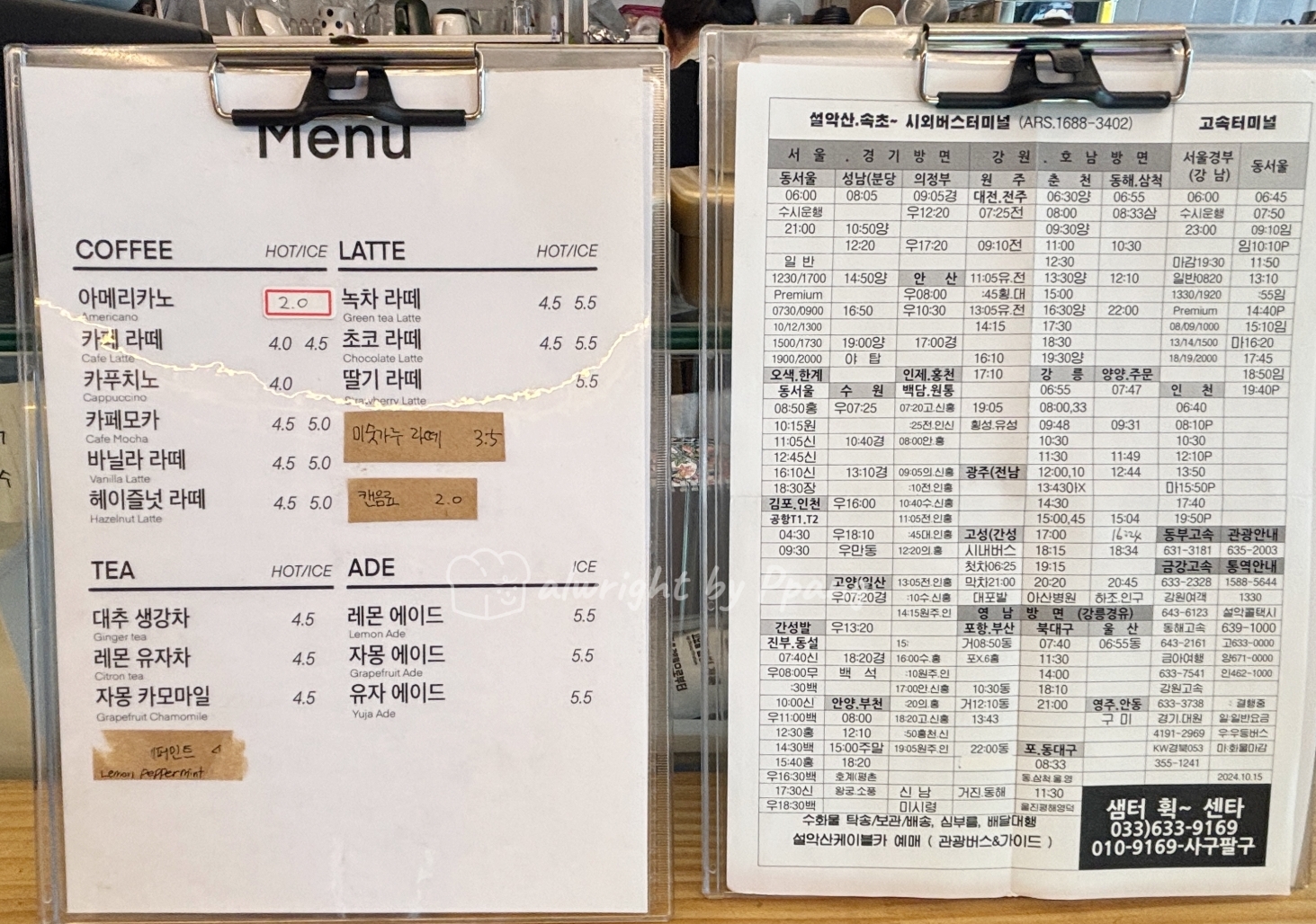 시외버스 시간표와 고속버스 시간표가 있어서 큰 도움이 되었다. 이런...... 내가 시간을 잘못 알고 있었다. 한시간 반이나 빨리 왔던 거다. 세트로 먹을 걸 그랬나? 아녀. 시간 있다고 과식하지 말자.